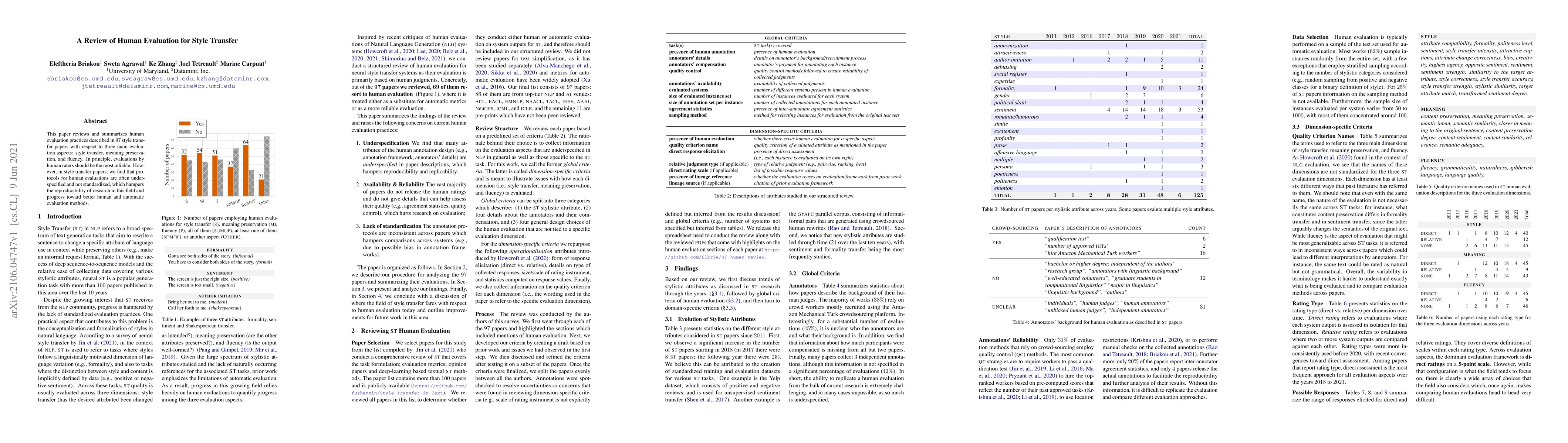 This paper reviews human evaluation practices in 97 style transfer papers, highlighting inconsistencies in assessing style transfer, meaning preservation, and fluency. The lack of standardized protocols hampers reproducibility and progress in both human and automatic evaluation methods.