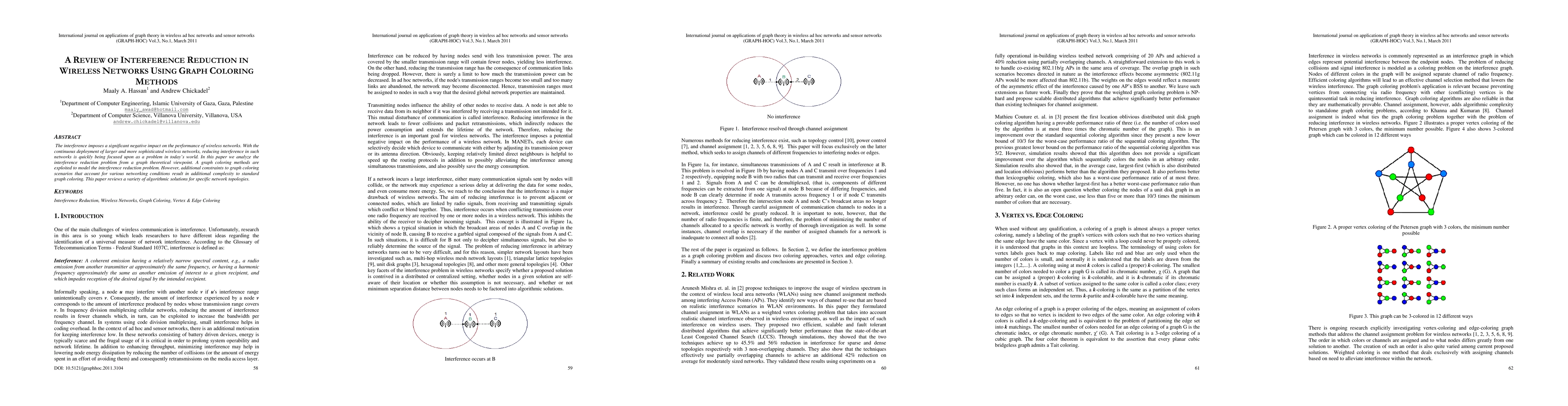 This paper explores the use of graph coloring methods to reduce interference in wireless networks, analyzing various algorithmic solutions tailored to different network topologies while addressing the added complexity from additional constraints.