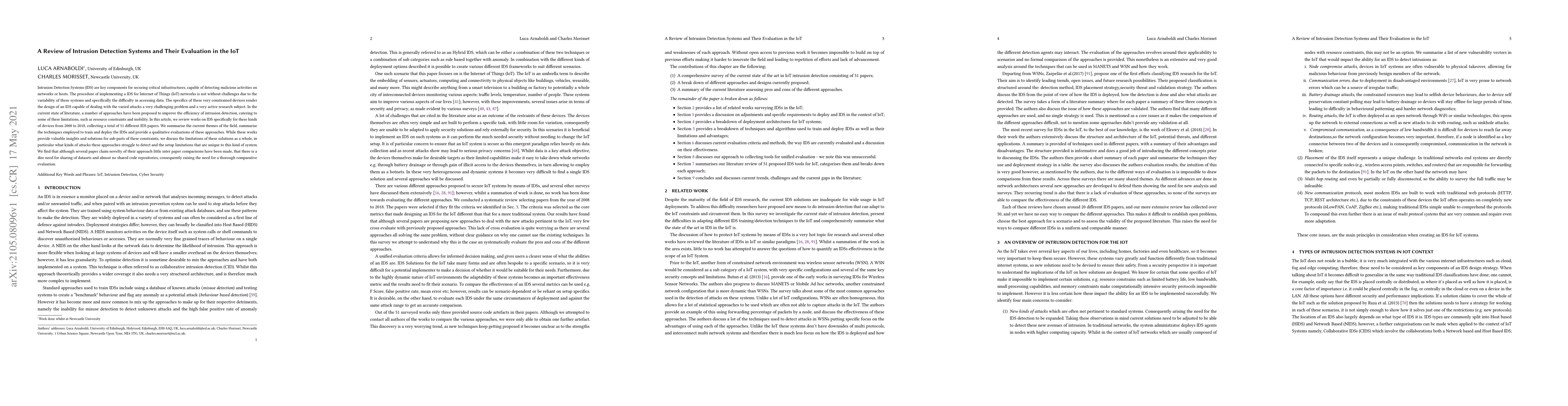 Intrusion Detection Systems (IDS) are key components for securing critical infrastructures, capable of detecting malicious activities on networks or hosts. The procedure of implementing a IDS for Internet of Things (IoT) networks is not without challenges due to the variability of these systems and specifically the difficulty in accessing data. The specifics of these very constrained devices render the design of an IDS capable of dealing with the varied attacks a very challenging problem and a very active research subject. In the current state of literature, a number of approaches have been proposed to improve the efficiency of intrusion detection, catering to some of these limitations, such as resource constraints and mobility. In this article, we review works on IDS specifically for these kinds of devices from 2008 to 2018, collecting a total of 51 different IDS papers. We summarise the current themes of the field, summarise the techniques employed to train and deploy the IDSs and provide a qualitative evaluations of these approaches. While these works provide valuable insights and solutions for sub-parts of these constraints, we discuss the limitations of these solutions as a whole, in particular what kinds of attacks these approaches struggle to detect and the setup limitations that are unique to this kind of system. We find that although several paper claim novelty of their approach little inter paper comparisons have been made, that there is a dire need for sharing of datasets and almost no shared code repositories, consequently raising the need for a thorough comparative evaluation.