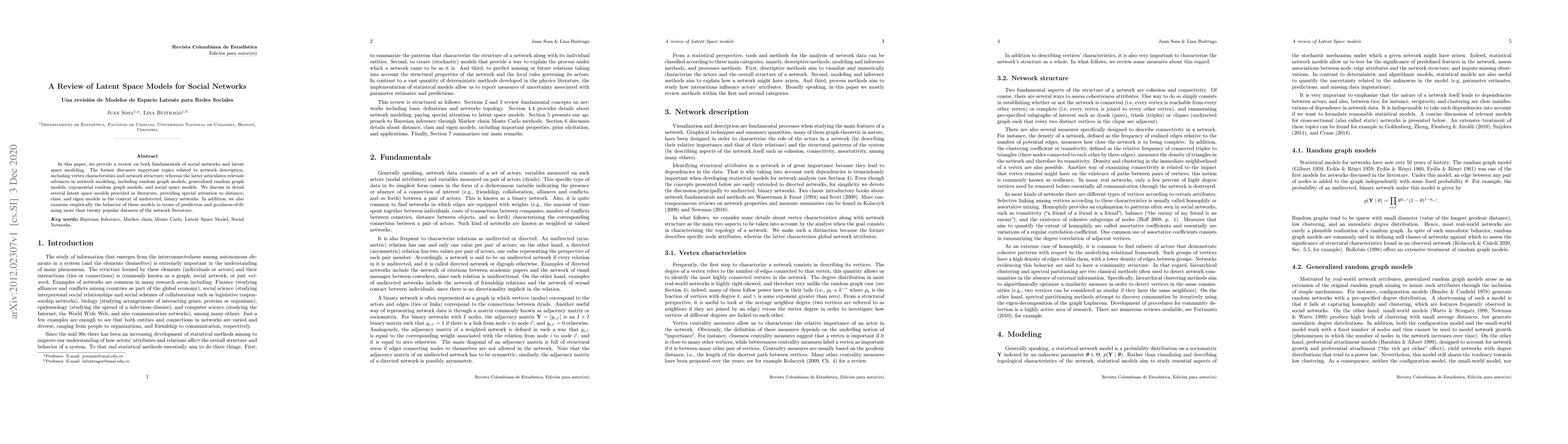 This paper reviews the fundamentals of social networks and advances in latent space modeling, focusing on various models like random graph, exponential random graph, and social space models. It also examines the performance of these models using over twenty datasets for prediction and goodness-of-fit.