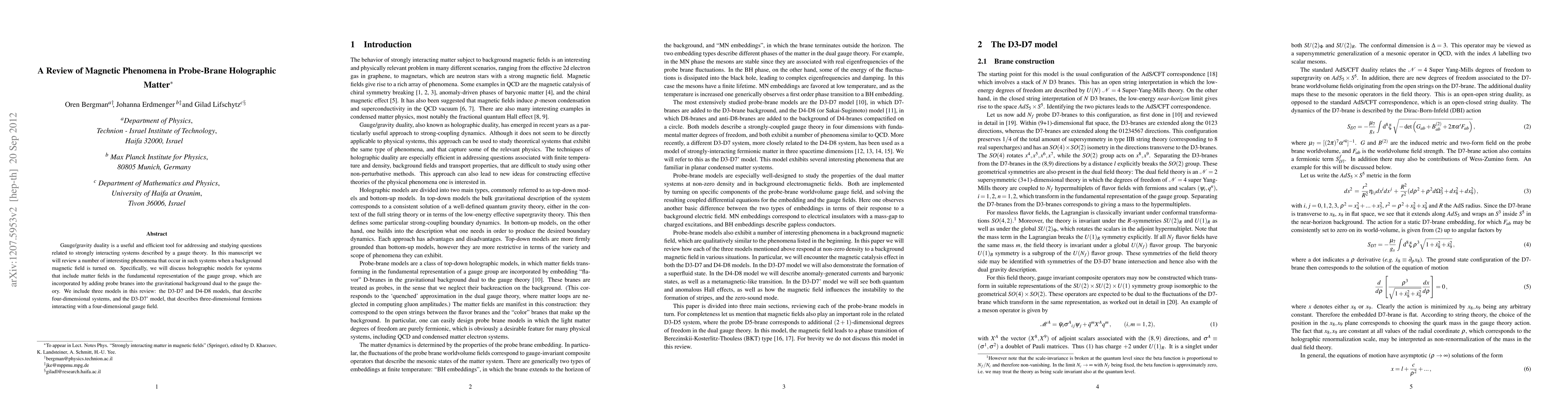 Gauge/gravity duality is a useful and efficient tool for addressing and studying questions related to strongly interacting systems described by a gauge theory. In this manuscript we will review a number of interesting phenomena that occur in such systems when a background magnetic field is turned on. Specifically, we will discuss holographic models for systems that include matter fields in the fundamental representation of the gauge group, which are incorporated by adding probe branes into the gravitational background dual to the gauge theory. We include three models in this review: the D3-D7 and D4-D8 models, that describe four-dimensional systems, and the D3-D7' model, that describes three-dimensional fermions interacting with a four-dimensional gauge field.