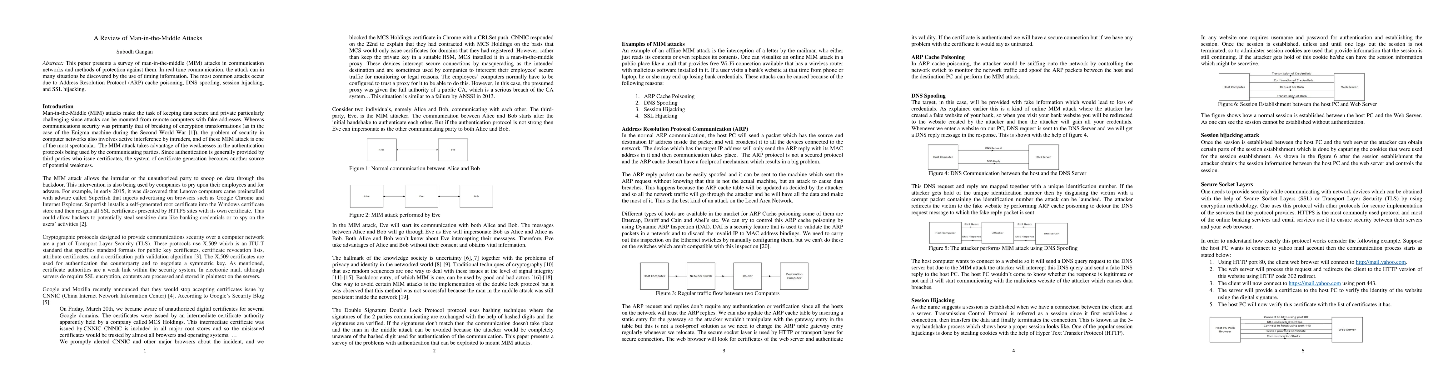 While the paper reviews existing literature, it offers a consolidated analysis of MIM attacks and their prevention, making it valuable for researchers and practitioners in network security.
