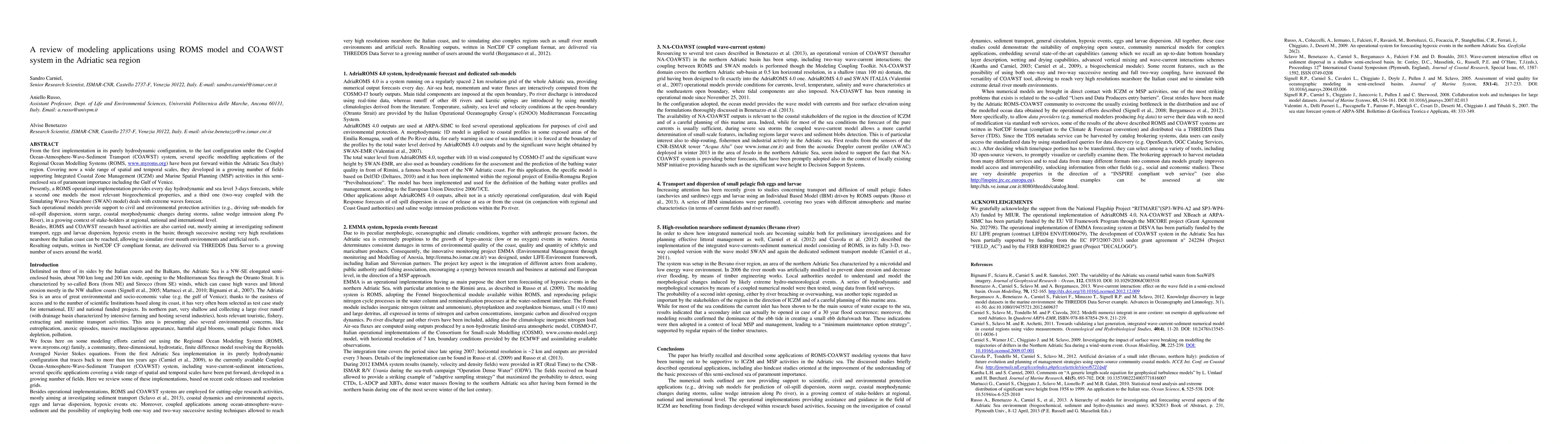 From the first implementation in its purely hydrodynamic configuration, to the last configuration under the Coupled Ocean-Atmosphere-Wave-Sediment Transport (COAWST) system, several specific modelling applications of the Regional Ocean Modelling Systems (ROMS, www.myroms.org) have been put forward within the Adriatic Sea (Italy) region. Covering now a wide range of spatial and temporal scales, they developed in a growing number of fields supporting Integrated Coastal Zone Management (ICZM) and Marine Spatial Planning (MSP) activities in this semi-enclosed sea of paramount importance including the Gulf of Venice. Presently, a ROMS operational implementation provides every day hydrodynamic and sea level 3-days forecasts, while a second one models the most relevant biogeochemical properties, and a third one (two-way coupled with the Simulating Waves Nearshore (SWAN) model) deals with extreme waves forecast. Such operational models provide support to civil and environmental protection activities (e.g., driving sub-models for oil-spill dispersion, storm surge, coastal morphodynamic changes during storms, saline wedge intrusion along Po River), in a growing context of stake-holders at regional, national and international level. Besides, ROMS and COAWST research based activities are also carried out, mostly aiming at investigating sediment transport, eggs and larvae dispersion, hypoxic events in the basin; through successive nesting very high resolutions nearshore the Italian coast can be reached, allowing to simulate river mouth environments and artificial reefs. Resulting outputs, written in NetCDF CF compliant format, are delivered via THREDDS Data Server to a growing number of users around the world.