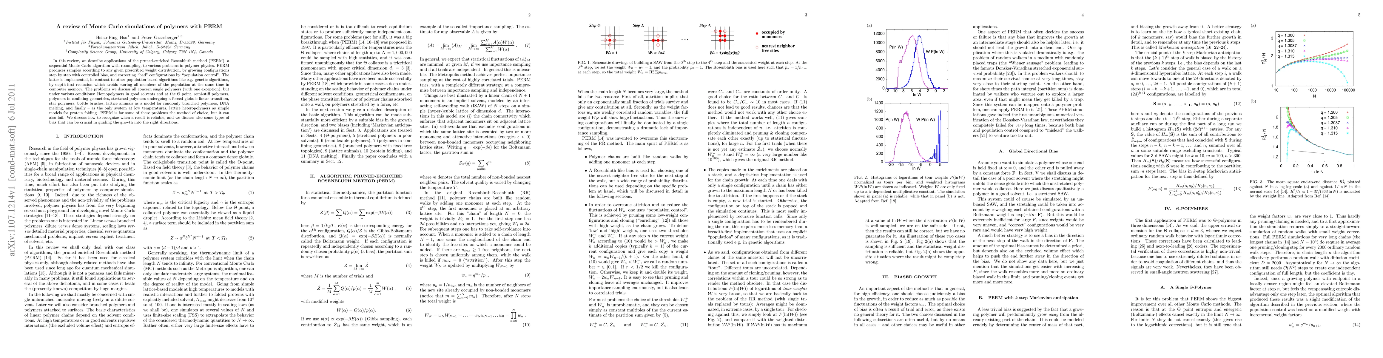 This review explores the applications of the pruned-enriched Rosenbluth method (PERM) in polymer physics, highlighting its effectiveness in simulating various polymer systems under different conditions. PERM's depth-first recursion allows it to avoid memory overload, making it a versatile tool for studying complex polymer behaviors.