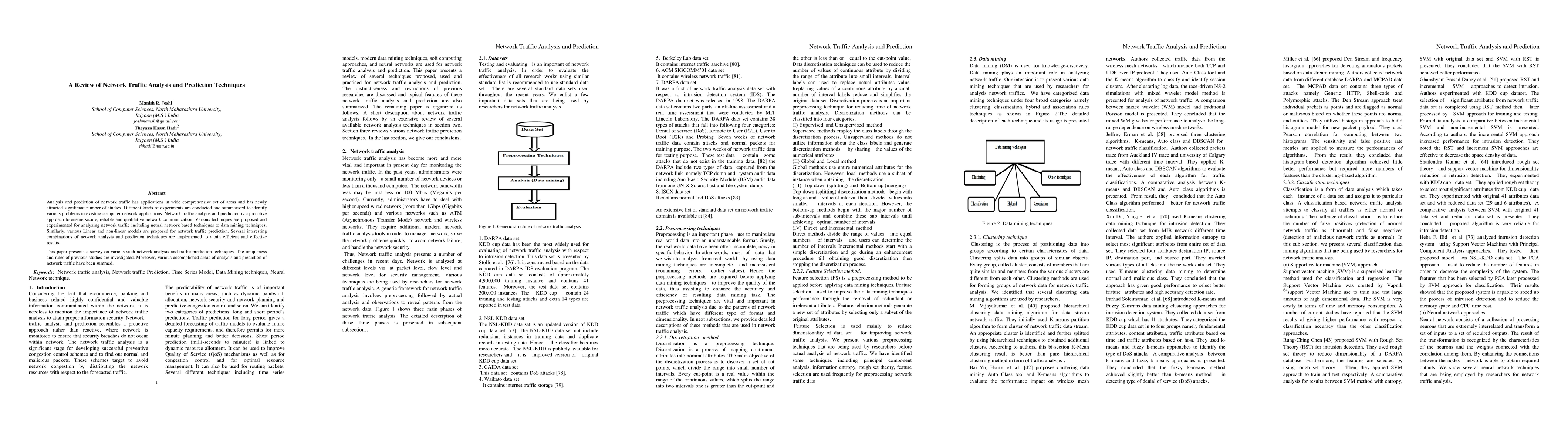 This paper reviews various network traffic analysis and prediction techniques, including neural networks and data mining methods, as well as linear and non-linear models. It investigates the strengths and limitations of previous studies and summarizes the progress made in ensuring secure and reliable network communication.