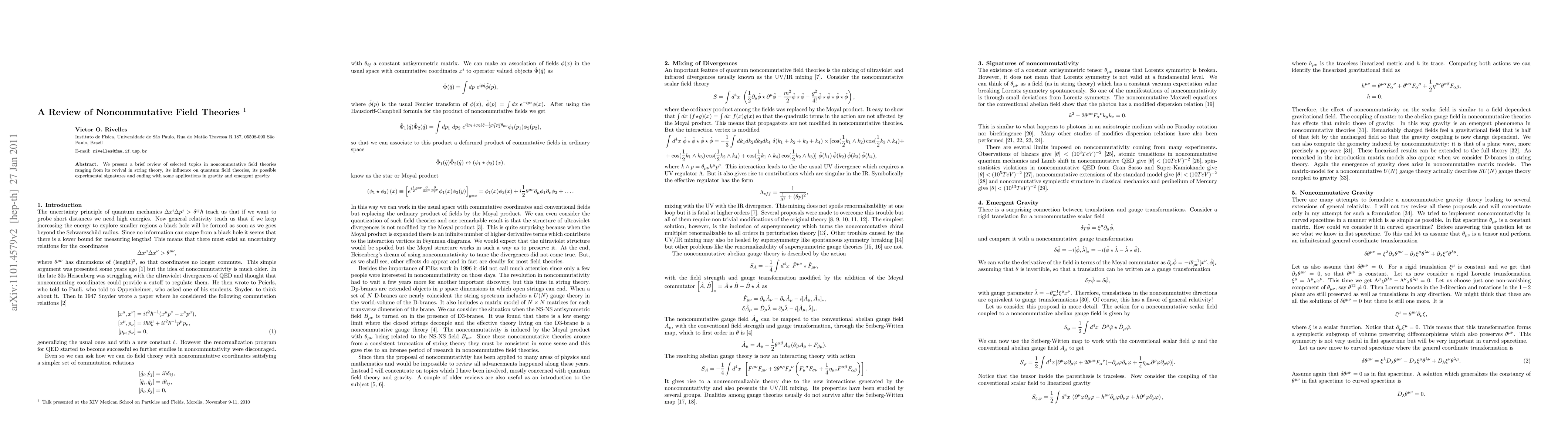 This paper reviews noncommutative field theories, tracing their resurgence in string theory, effects on quantum field theories, potential experimental signatures, and applications in gravity and emergent gravity. It provides a concise overview of these advanced topics in theoretical physics.