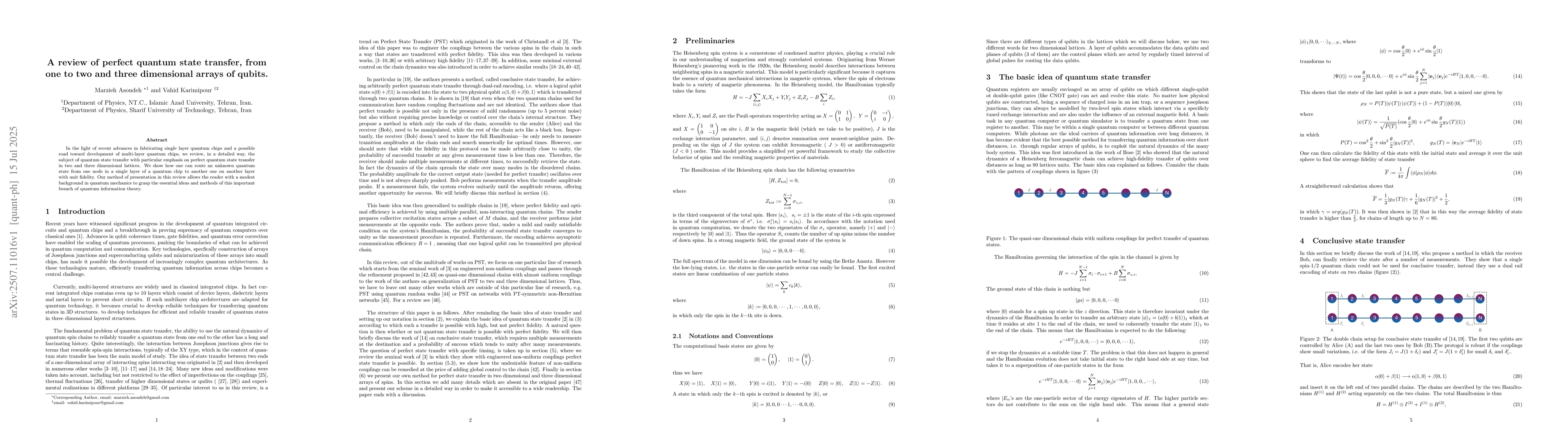 In the light of recent advances in fabricating single layer quantum chips and a possible road toward development of multi-layer quantum chips, we review, in a detailed way, the subject of quantum state transfer with particular emphasis on perfect quantum state transfer in two and three dimensional lattices. We show how one can route an unknown quantum state from one node in a single layer of a quantum chip to another one on another layer with unit fidelity. Our method of presentation in this review allows the reader with a modest background in quantum mechanics to grasp the essential ideas and methods of this important branch of quantum information theory.