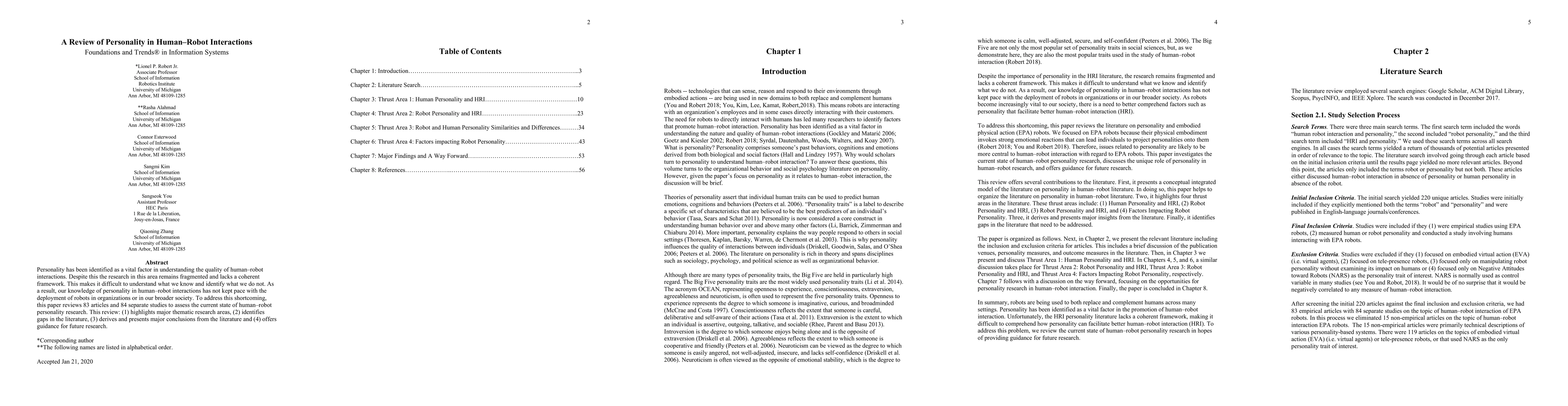 This paper reviews 83 articles and 84 studies to assess the current state of personality research in human robot interactions, highlighting key themes, identifying literature gaps, deriving major conclusions, and offering guidance for future research to better understand this fragmented field.