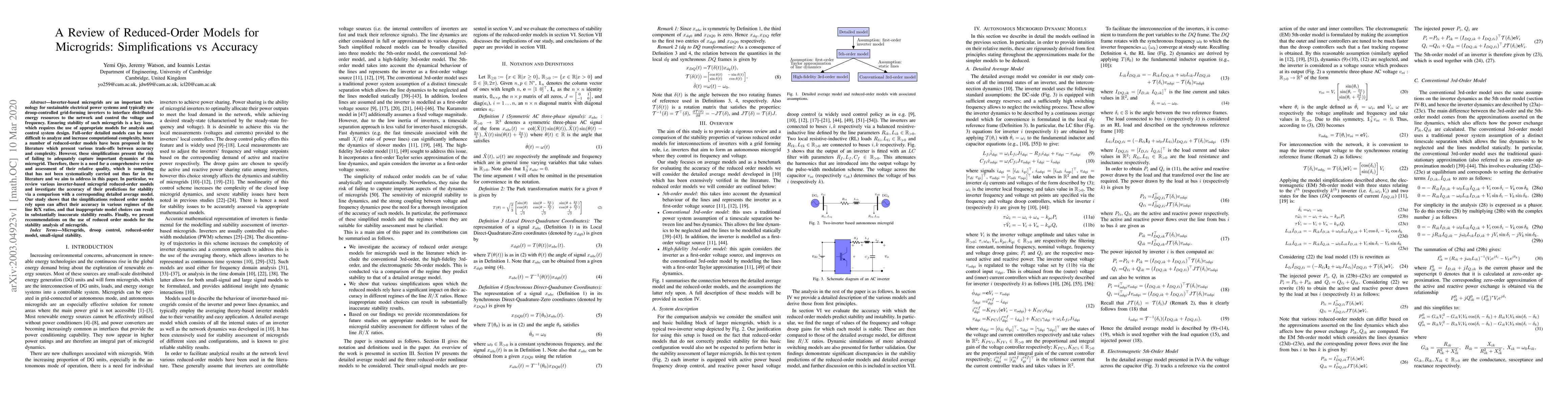 The study compares various simplified models with a detailed average model, demonstrating the impact of line R/X ratios on model accuracy and suggesting best practices for stability analysis in microgrid systems.