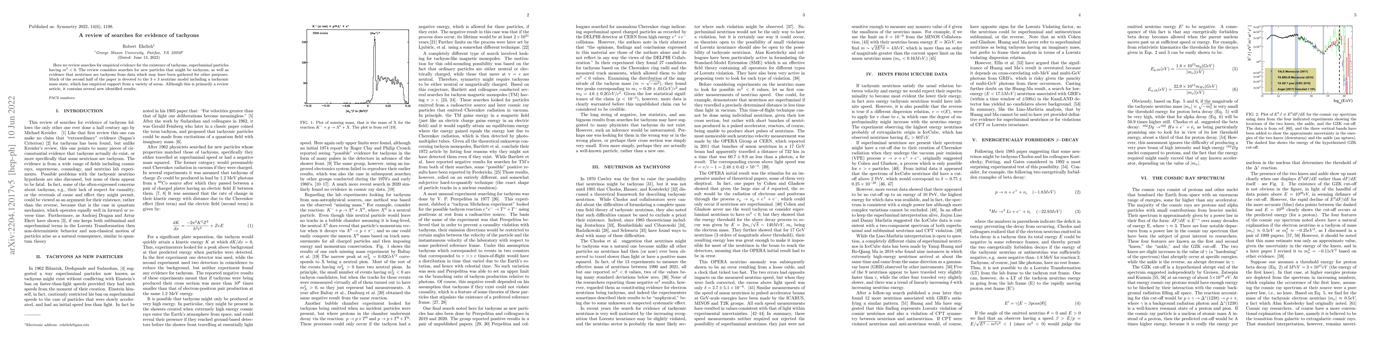 This review examines evidence for tachyons, hypothetical superluminal particles, focusing on particle search results and neutrino data. It highlights the 3+3 neutrino model with a tachyonic mass state, supported by various empirical findings, and presents new results in the process.