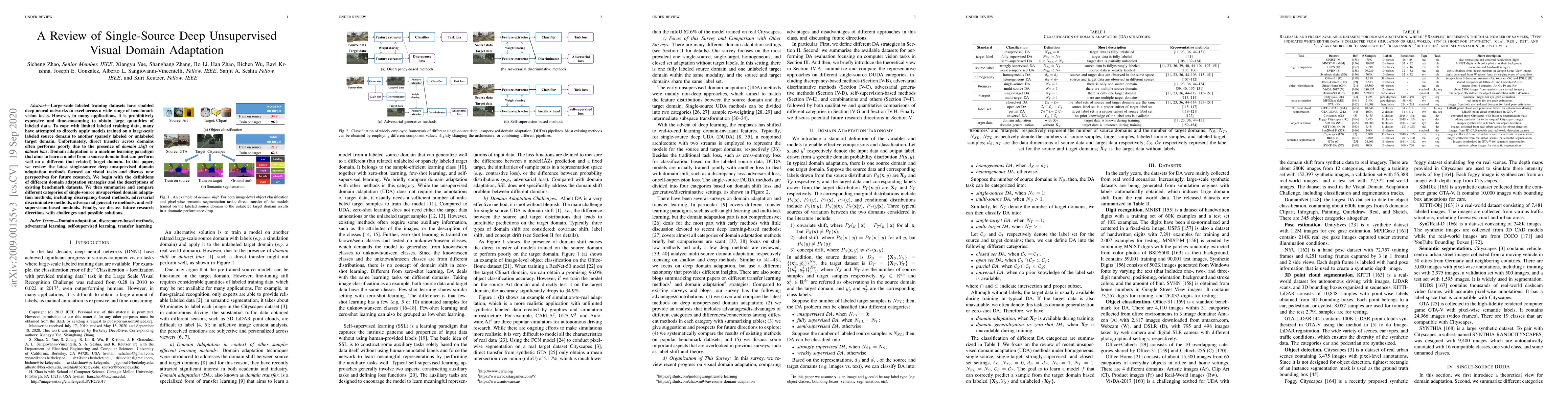 This paper reviews recent advancements in single-source deep unsupervised visual domain adaptation, focusing on methods to transfer knowledge from a labeled source domain to a target domain with limited or no labels. It categorizes and compares various adaptation techniques and highlights future research directions to address ongoing challenges.