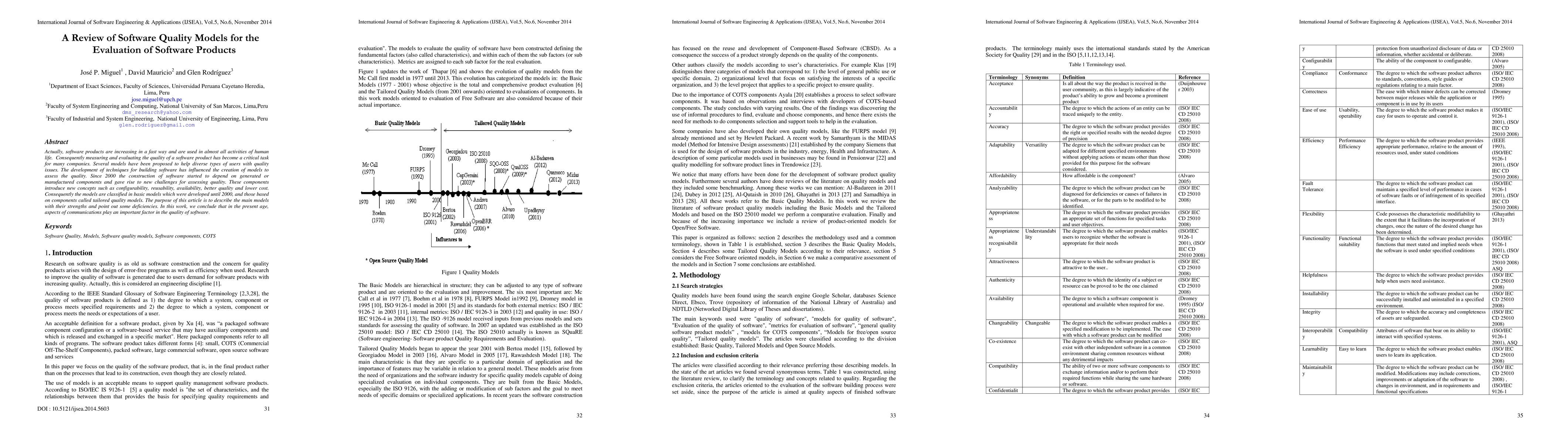 Actually, software products are increasing in a fast way and are used in almost all activities of human life. Consequently measuring and evaluating the quality of a software product has become a critical task for many companies. Several models have been proposed to help diverse types of users with quality issues. The development of techniques for building software has influenced the creation of models to assess the quality. Since 2000 the construction of software started to depend on generated or manufactured components and gave rise to new challenges for assessing quality. These components introduce new concepts such as configurability, reusability, availability, better quality and lower cost. Consequently the models are classified in basic models which were developed until 2000, and those based on components called tailored quality models. The purpose of this article is to describe the main models with their strengths and point out some deficiencies. In this work, we conclude that in the present age, aspects of communications play an important factor in the quality of software
