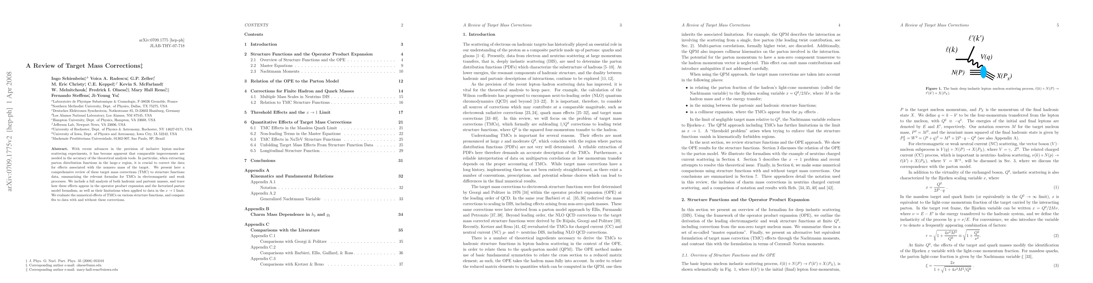 This review aims to improve the accuracy of theoretical analysis tools in particle physics by correcting for target mass effects in inclusive lepton-nuclear scattering experiments. It summarizes formulas and analyzes numerical effects on structure functions with and without these corrections.