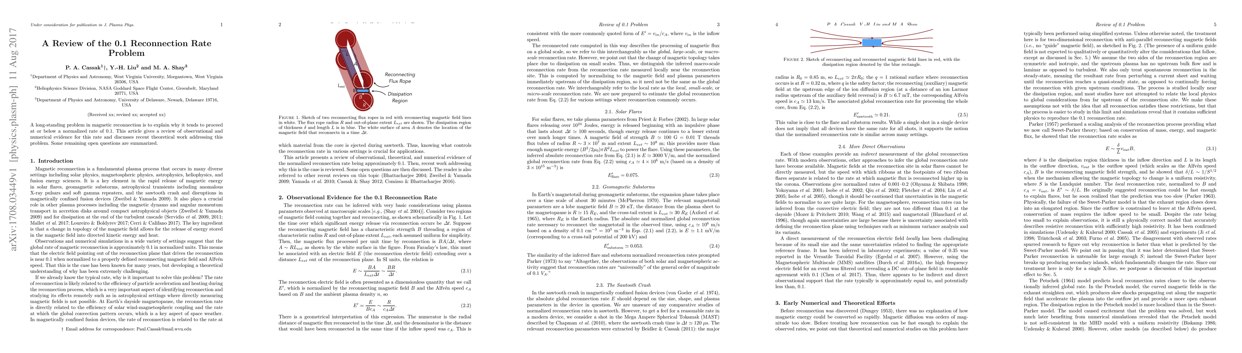 A long-standing problem in magnetic reconnection is to explain why it tends to proceed at or below a normalized rate of 0.1. This article gives a review of observational and numerical evidence for this rate and discusses recent theoretical work addressing this problem. Some remaining open questions are summarized.
