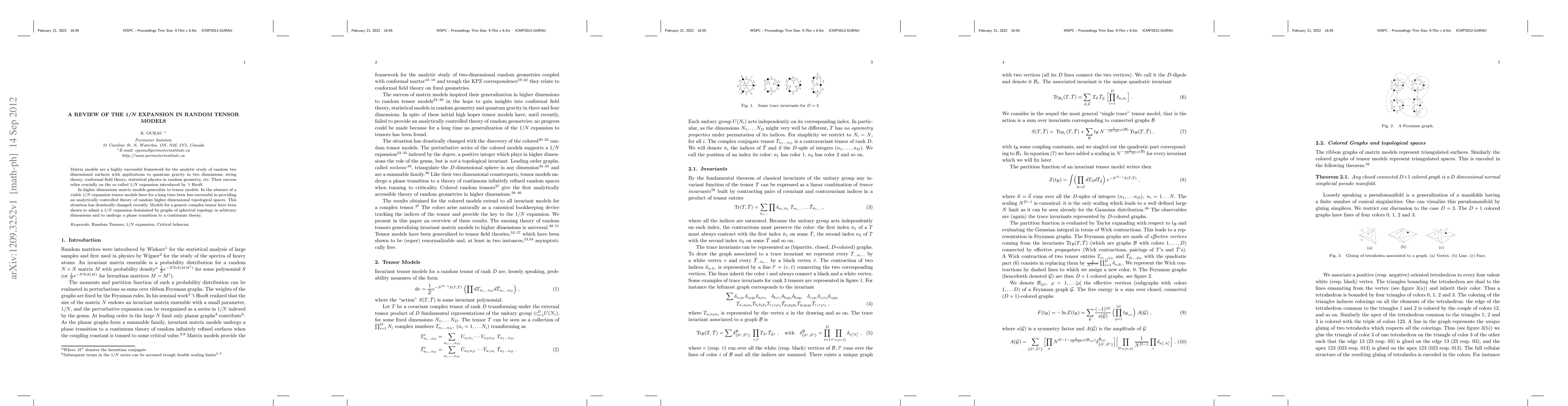 The paper reviews the 1/N expansion technique in random tensor models, which extends matrix models to higher dimensions and has recently allowed for a more successful analytical study of random higher-dimensional topological spaces, demonstrating a phase transition to a continuum theory.