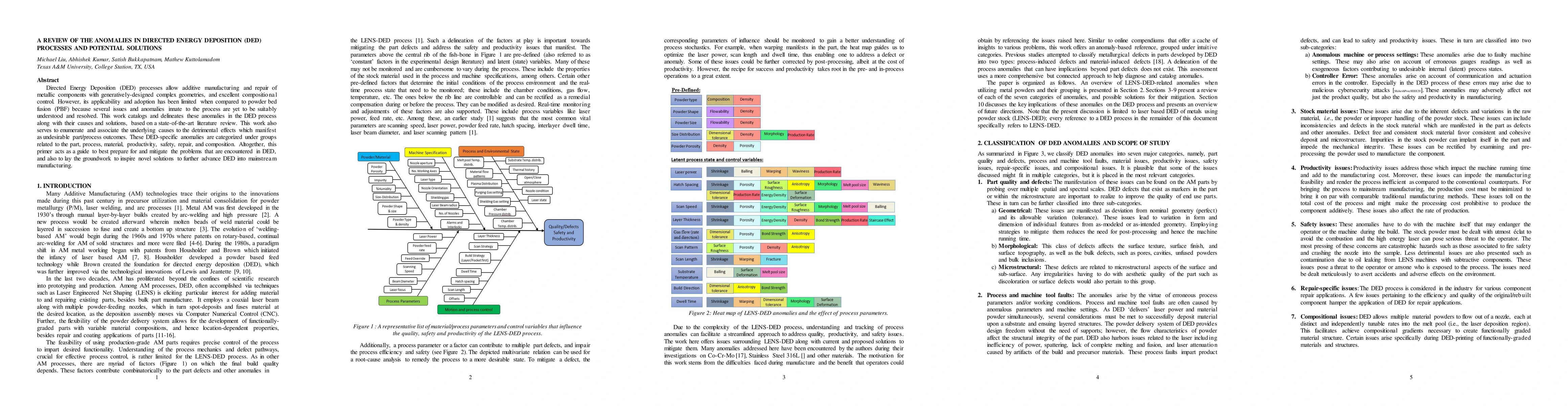 This paper reviews anomalies in Directed Energy Deposition (DED) processes, identifying issues related to part, process, material, productivity, safety, repair, and functional gradients, and proposes potential solutions to mitigate these problems. It aims to inspire novel solutions and advance DED into mainstream manufacturing.