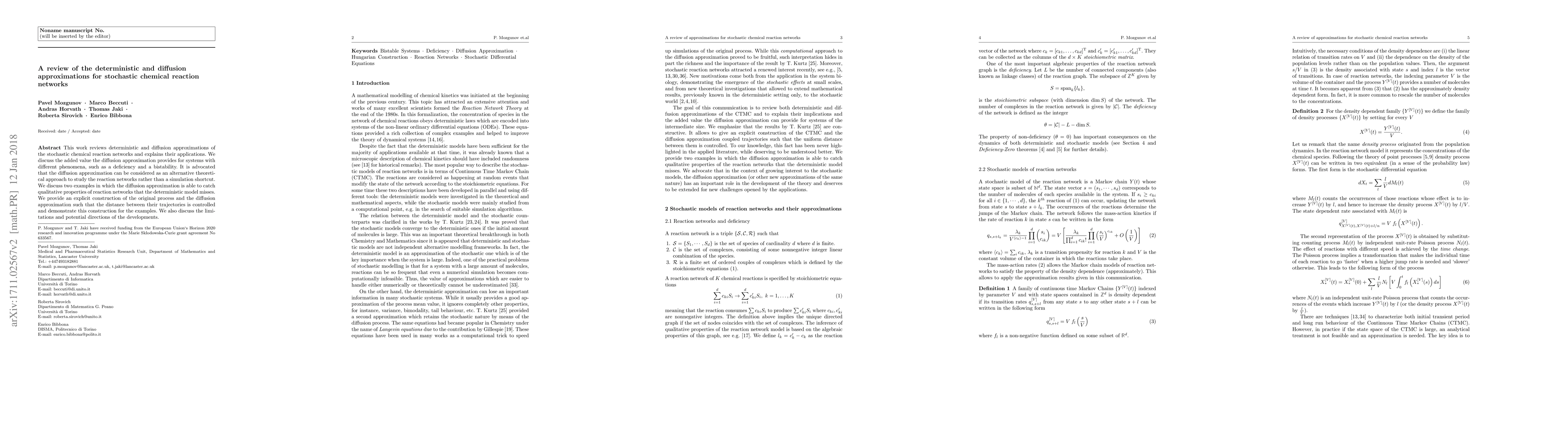 This paper reviews deterministic and diffusion approximations for stochastic chemical reaction networks, highlighting the diffusion approximation's value in capturing phenomena like deficiency and bistability. It advocates for the diffusion approximation as a robust theoretical approach rather than just a simulation tool, providing examples where it reveals qualitative properties missed by deterministic models.