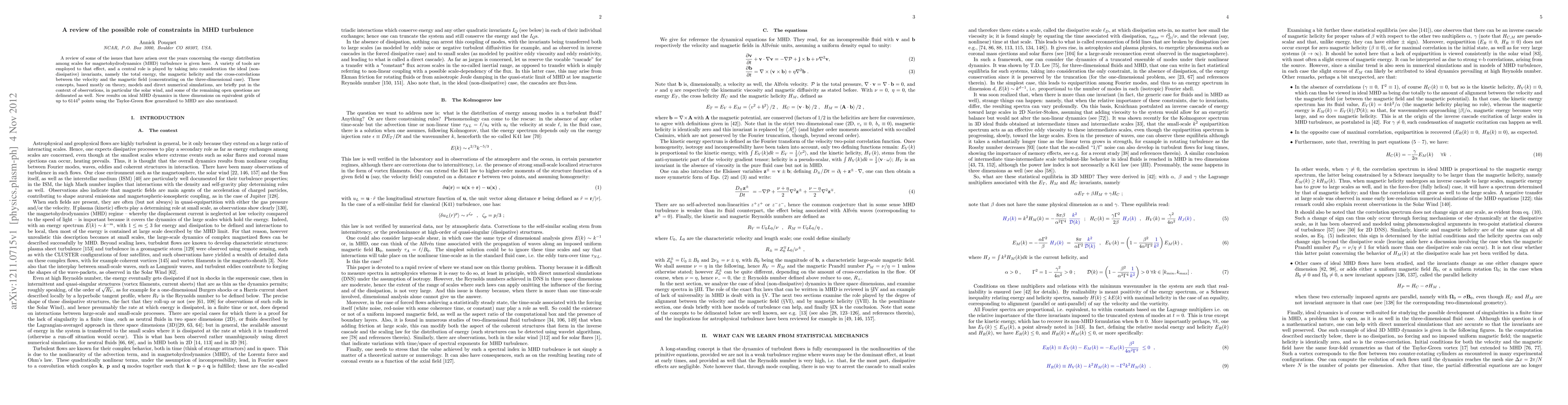 A review of some of the issues that have arisen over the years concerning the energy distribution among scales for magnetohydrodynamics (MHD) turbulence is given here. A variety of tools are employed to that effect, and a central role is played by taking into consideration the ideal (non-dissipative) invariants, namely the total energy, the magnetic helicity and the cross-correlations between the velocity and the magnetic field (concentrating on the three-dimensional case). These concepts, based mostly on theory, models and direct numerical simulations, are briefly put in the context of observations, in particular the solar wind, and some of the remaining open questions are delineated as well. New results on ideal MHD dynamics in three dimensions on equivalent grids of up to $6144^3$ points using the Taylor-Green flow generalized to MHD are also mentioned.