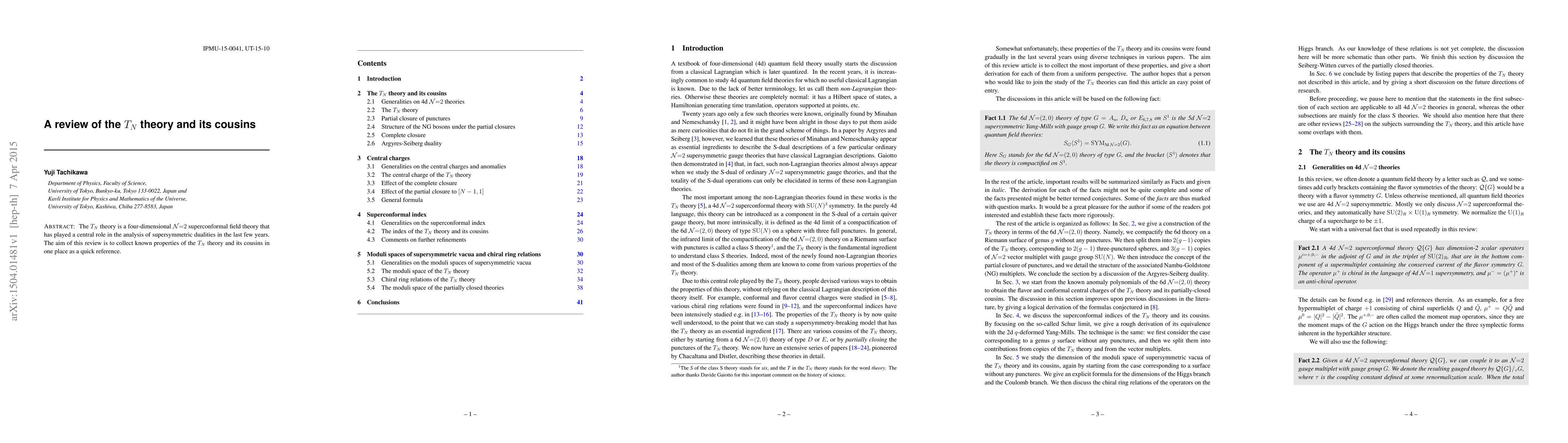The T_N theory is a four-dimensional N=2 superconformal field theory that has played a central role in the analysis of supersymmetric dualities in the last few years. The aim of this review is to collect known properties of the T_N theory and its cousins in one place as a quick reference.