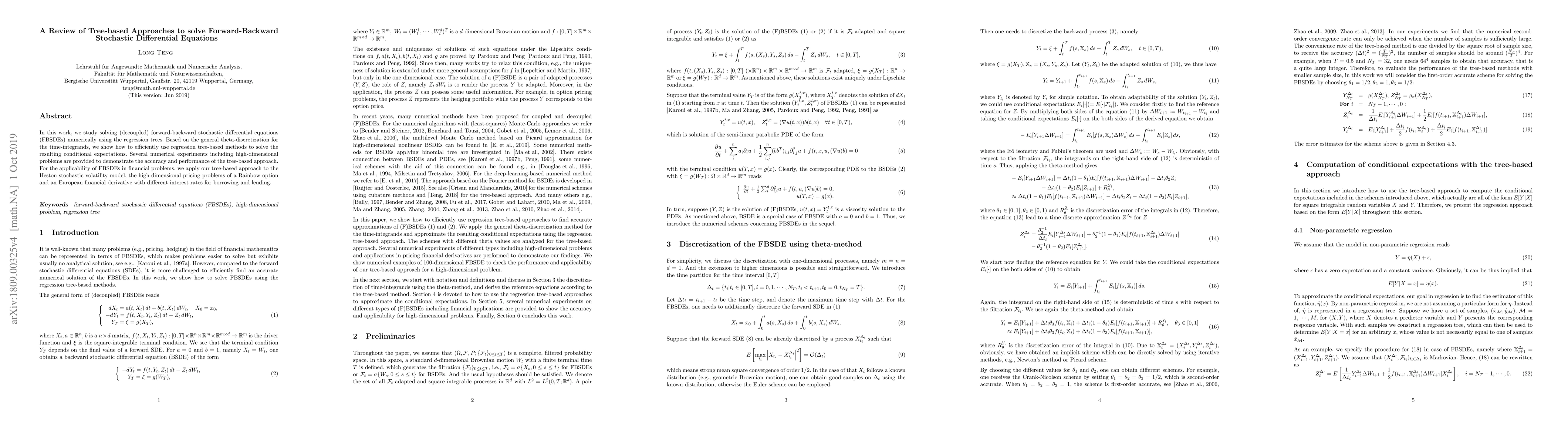 This paper reviews the application of regression tree-based methods to numerically solve forward-backward stochastic differential equations (FBSDEs), demonstrating their effectiveness through high-dimensional numerical experiments and financial applications like the Heston model and pricing derivatives.