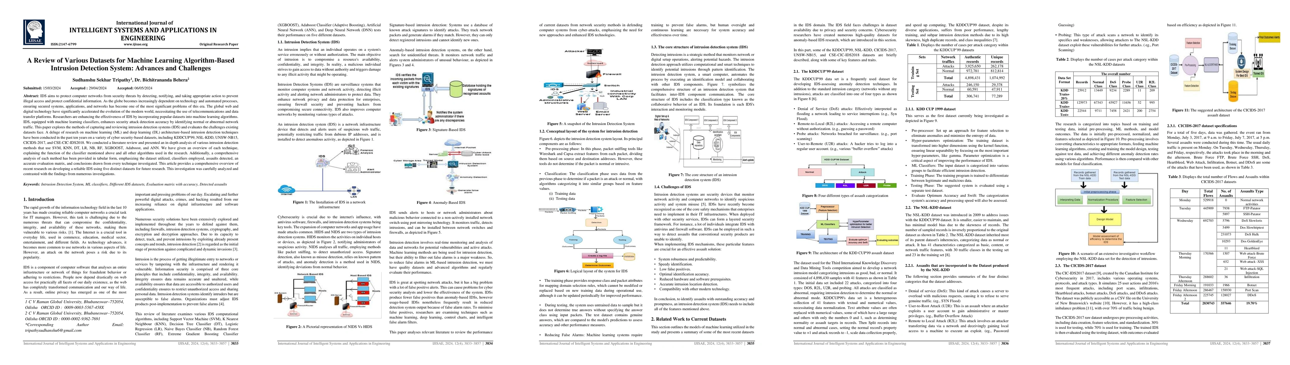 This research is important as it offers a comprehensive review of existing datasets and machine learning techniques for intrusion detection, aiding in the enhancement of security attack detection accuracy and guiding future IDS research.