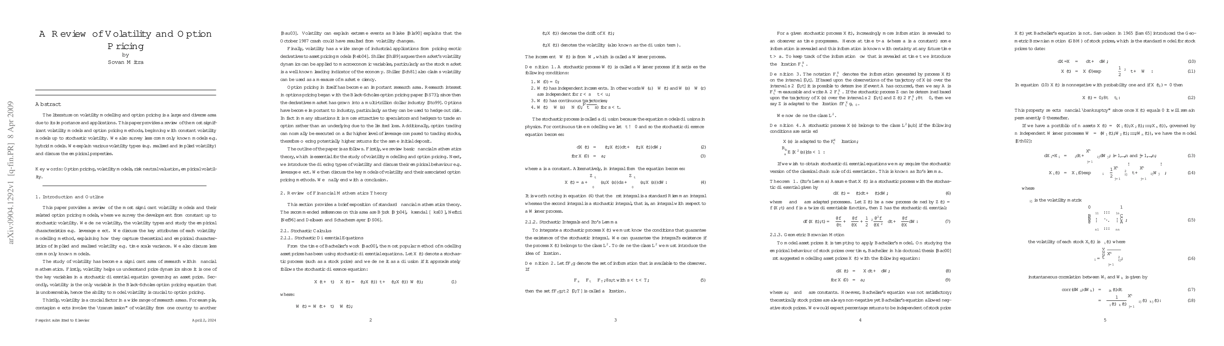 This review is crucial for understanding the evolution of volatility modeling and option pricing theories, providing a foundation for researchers and practitioners in finance and economics.