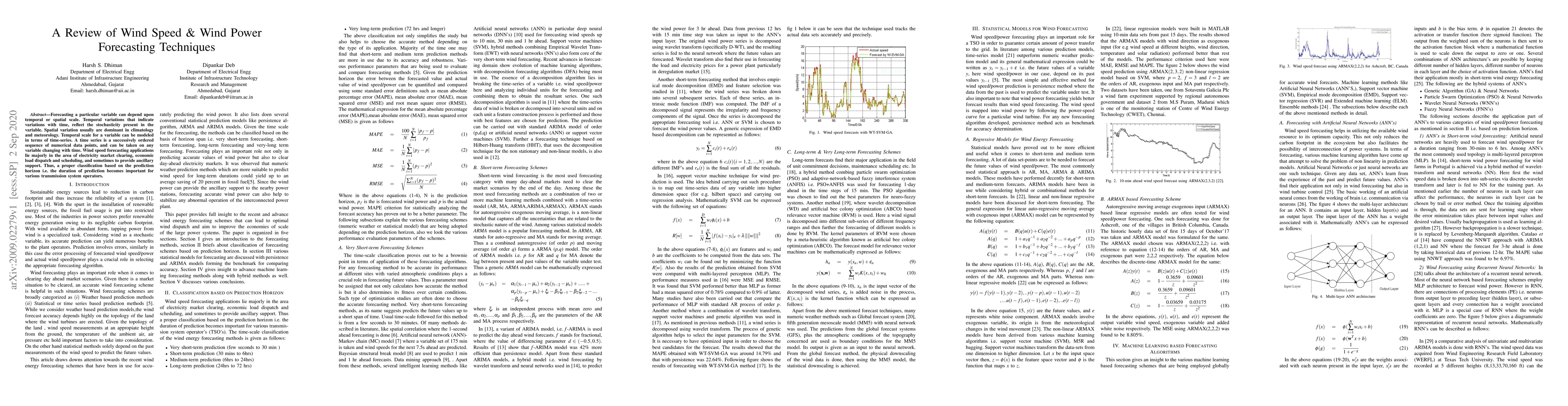 A review of wind speed forecasting techniques emphasizes the importance of considering temporal and spatial scales for accurate predictions, particularly in applications such as electricity market clearing and economic load dispatch.