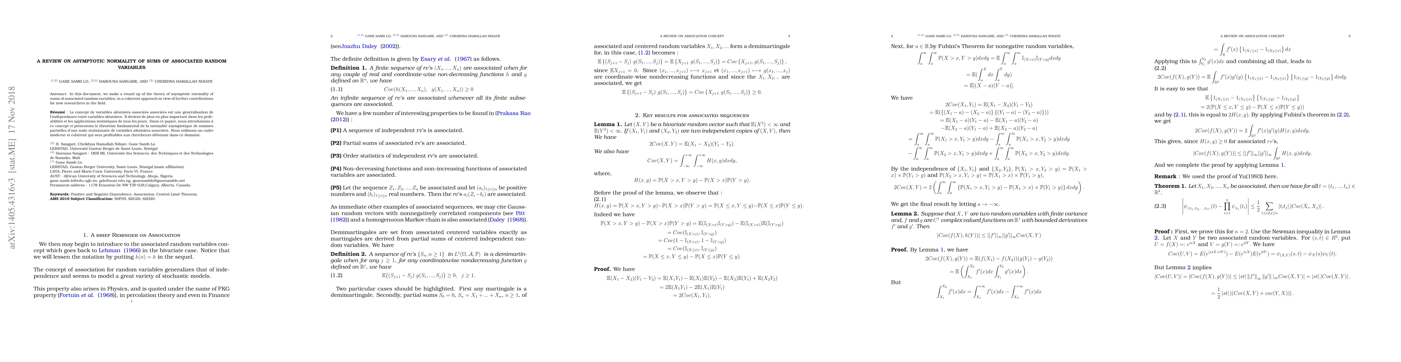 This paper reviews the theory of asymptotic normality for sums of associated random variables, aiming to provide a coherent foundation for new researchers to build upon. It lays the groundwork for future contributions in this area.