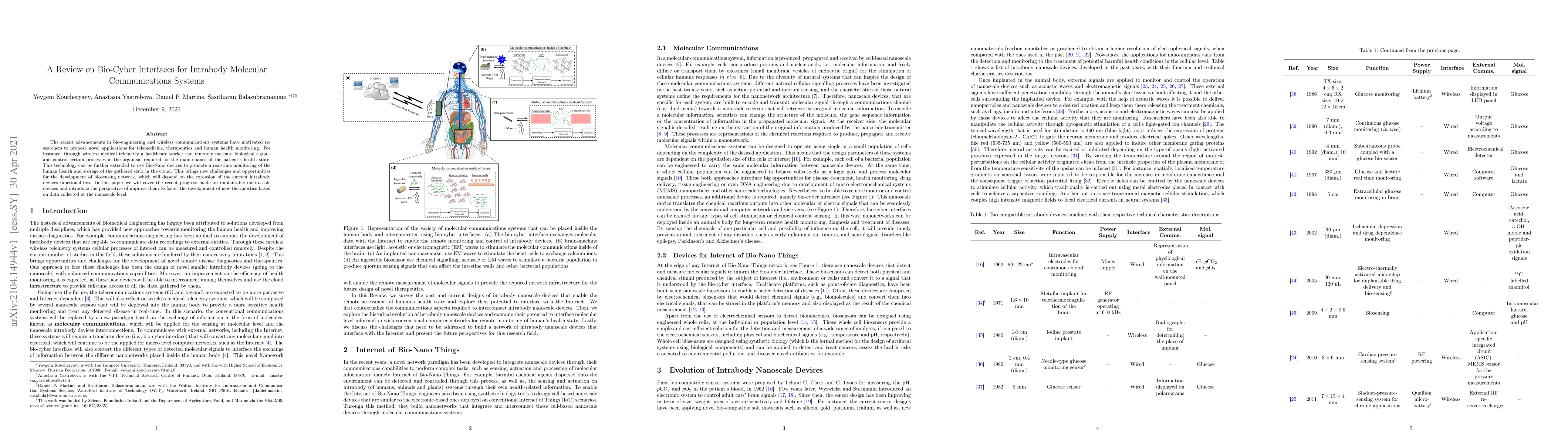 The recent advancements in bio-engineering and wireless communications systems have motivated researchers to propose novel applications for telemedicine, therapeutics and human health monitoring. For instance, through wireless medical telemetry a healthcare worker can remotely measure biological signals and control certain processes in the organism required for the maintenance of the patient's health state. This technology can be further extended to use Bio-Nano devices to promote a real-time monitoring of the human health and storage of the gathered data in the cloud. This brings new challenges and opportunities for the development of biosensing network, which will depend on the extension of the current intrabody devices functionalities. In this paper we will cover the recent progress made on implantable micro-scale devices and introduce the perspective of improve them to foster the development of new theranostics based on data collected at the nanoscale level.