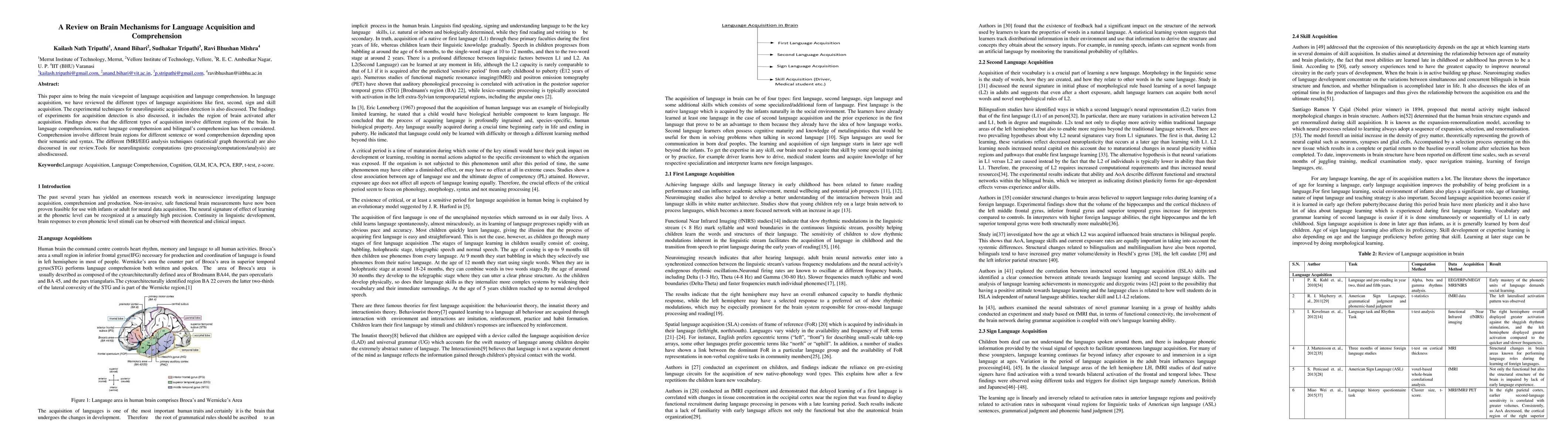 This review paper examines how the brain processes language acquisition and comprehension, highlighting differences in brain regions and techniques used for detection. It provides an overview of various methods and tools for analyzing language processing in both native speakers and bilingual individuals.