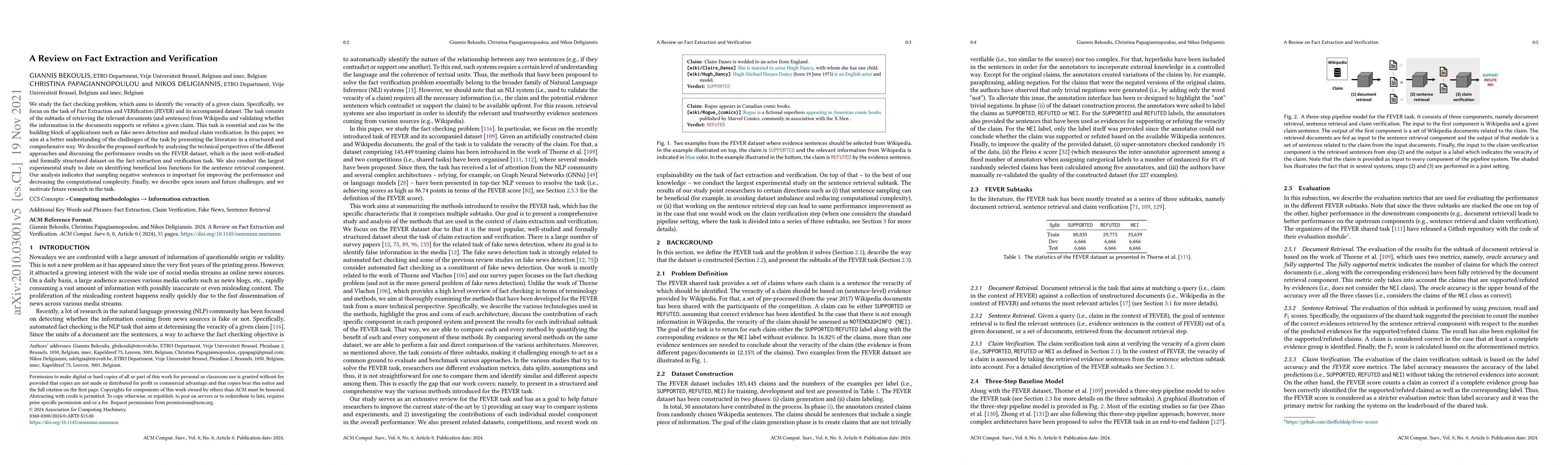 This paper reviews the fact checking task of Fact Extraction and VERification (FEVER), focusing on extracting relevant documents from Wikipedia to validate claims. It analyzes various methods and their performance on the FEVER dataset, highlighting the importance of sampling negative sentences to enhance performance and reduce complexity. The study also outlines open issues and future research directions in the field.