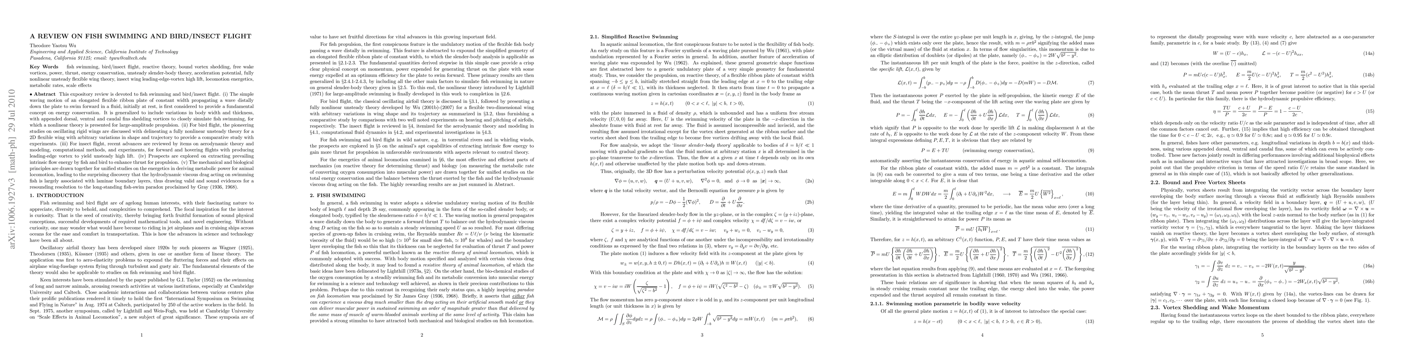 This review paper explores the similarities between fish swimming and bird/insect flight, presenting nonlinear theories and computational methods to simulate their movements and shedding light on the resolution of the fish-swim paradox.