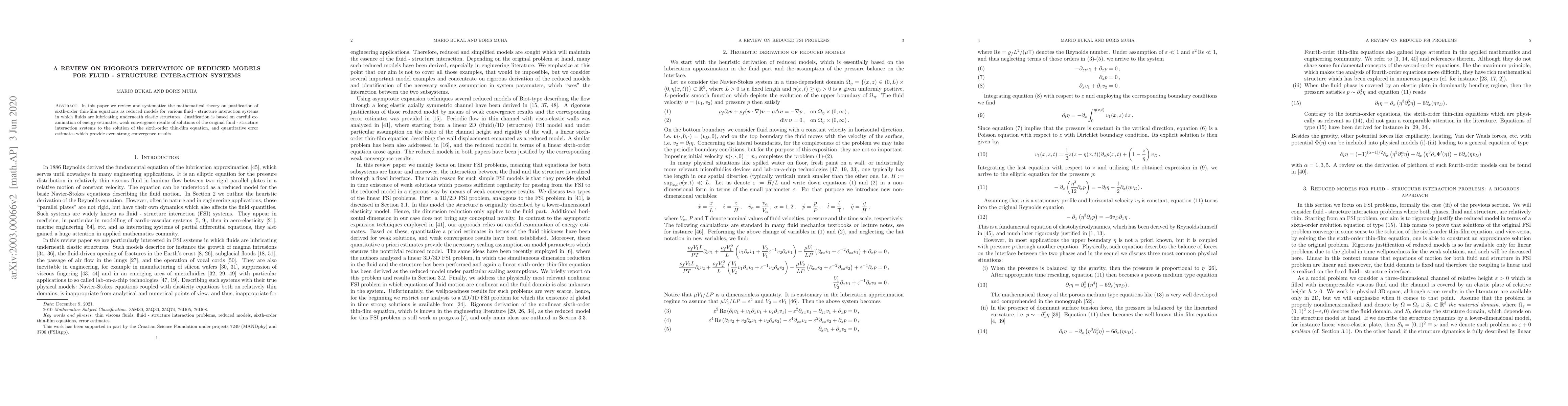 This paper reviews the mathematical theory for justifying sixth-order thin-film equations as reduced models for fluid-structure interaction systems, focusing on energy estimates, weak convergence, and quantitative error estimates for strong convergence.