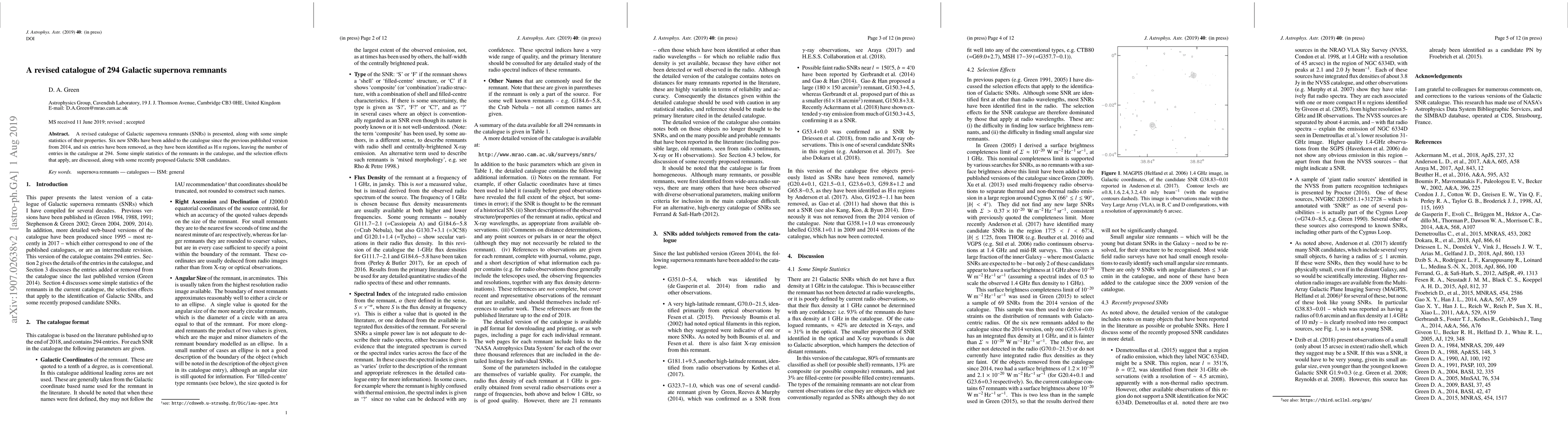 This paper presents a revised catalogue of 294 Galactic supernova remnants (SNRs), adding six new entries and removing six misidentified HII regions. The paper also discusses statistical properties and selection effects of the catalogued SNRs.