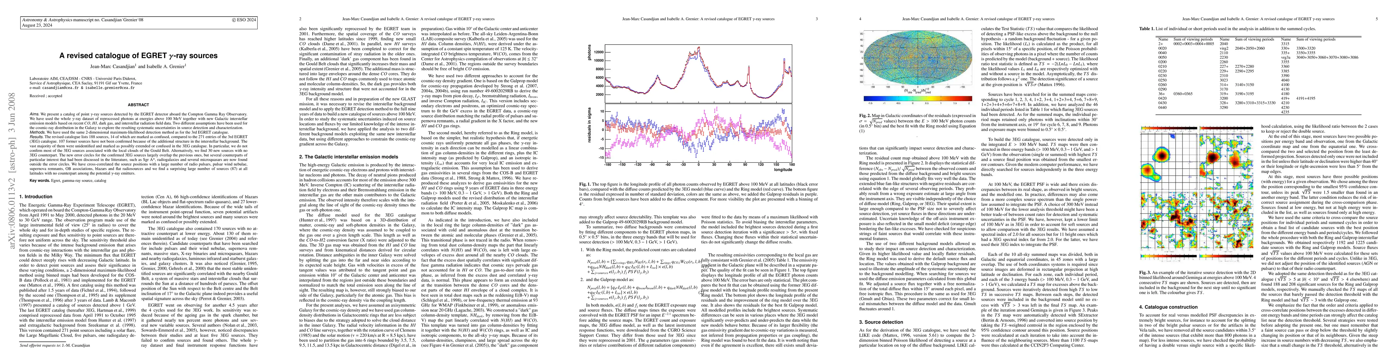 The revised EGRET gamma-ray source catalogue lists 188 sources, with 14 marked as confused, and reveals 30 new sources without a counterpart in the previous catalogue.