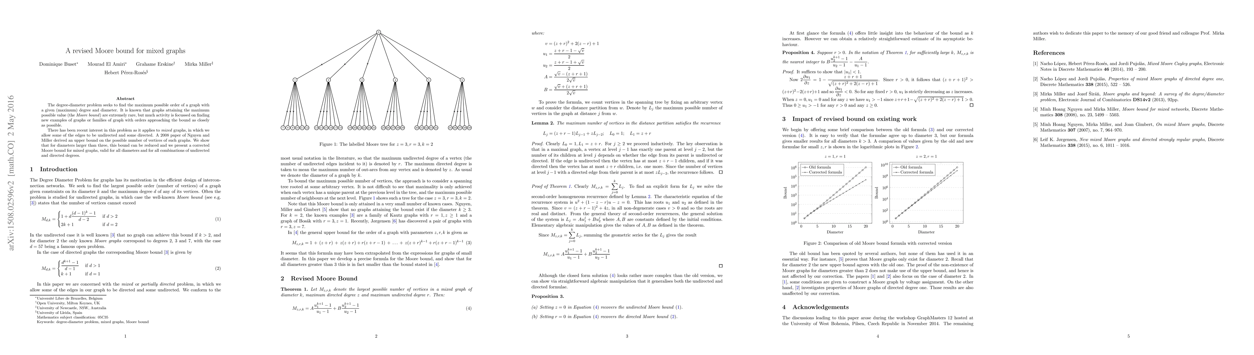This paper revises the Moore bound for mixed graphs, which allow both undirected and directed edges, and corrects the upper bound derived by Nguyen and Miller for diameters larger than three. The authors present a new Moore bound valid for all diameters and combinations of undirected and directed degrees.