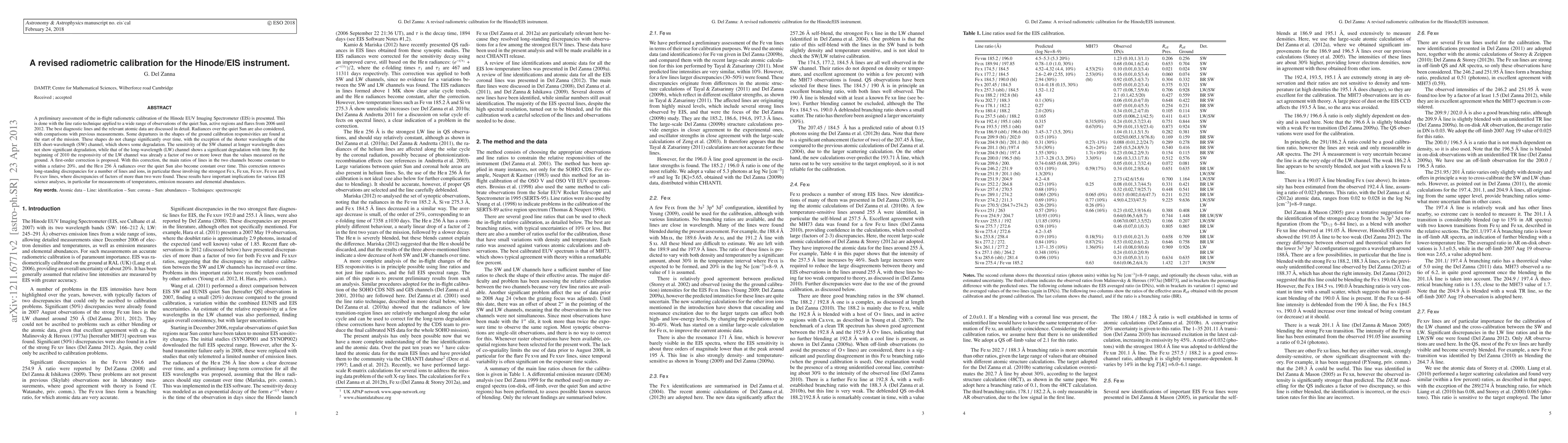 This paper presents a revised radiometric calibration for the Hinode/EIS instrument, identifying significant degradation in the long-wavelength channel and proposing a first-order correction. The correction addresses discrepancies in line ratios and radiances, improving the accuracy of temperature, emission measure, and elemental abundance measurements.