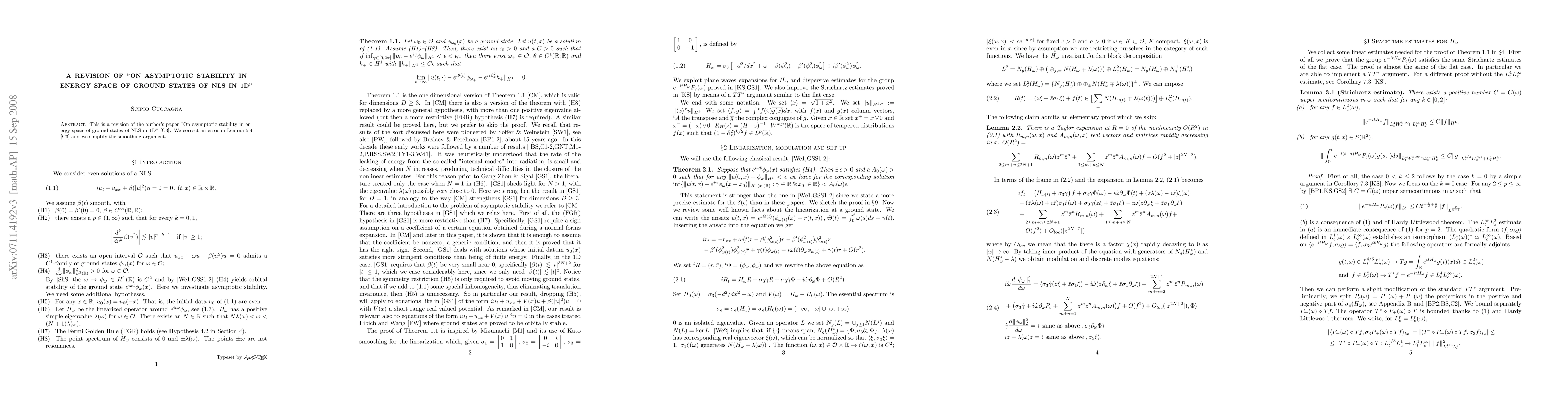 This paper revises T. Mizumachi's work to establish smoothing estimates for dispersive solutions of NLS in 1D, extending the asymptotic stability result for ground states of NLS from higher dimensions to 1D.