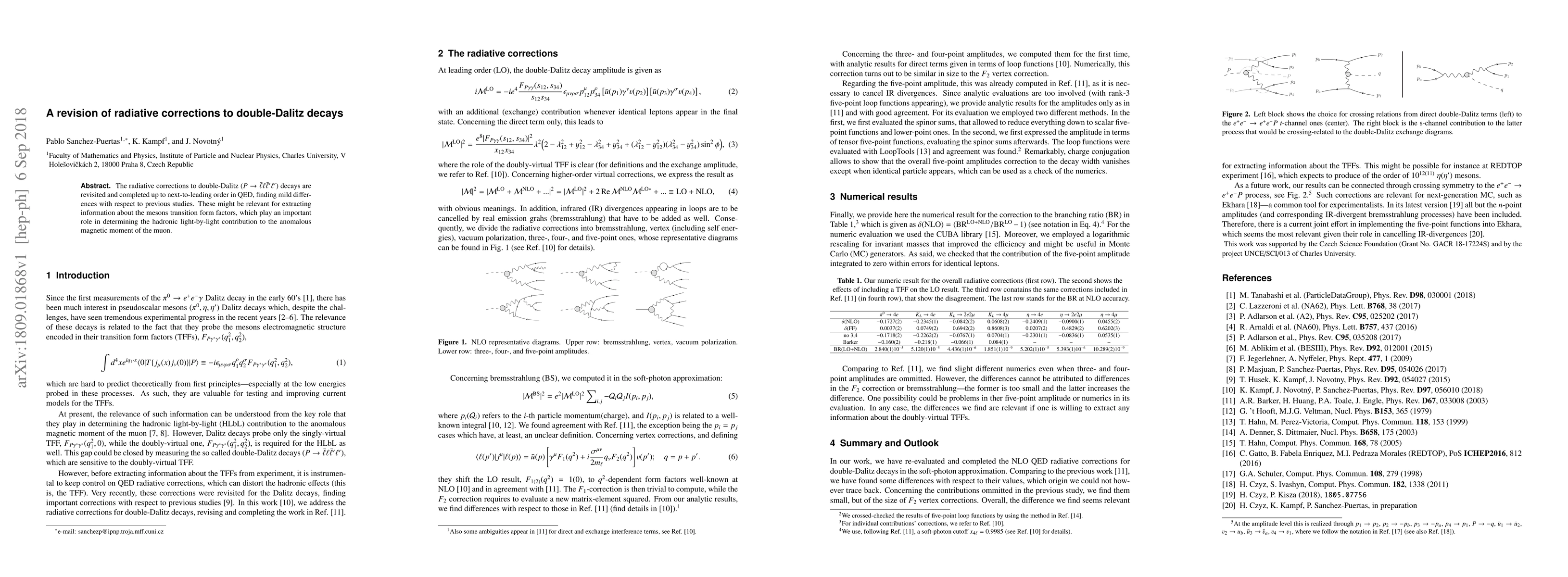 The radiative corrections to double-Dalitz ($P\to\bar{\ell}\ell\bar{\ell'}\ell'$) decays are revisited and completed up to next-to-leading order in QED, finding mild differences with respect to previous studies. These might be relevant for extracting information about the mesons transition form factors, which play an important role in determining the hadronic light-by-light contribution to the anomalous magnetic moment of the muon.