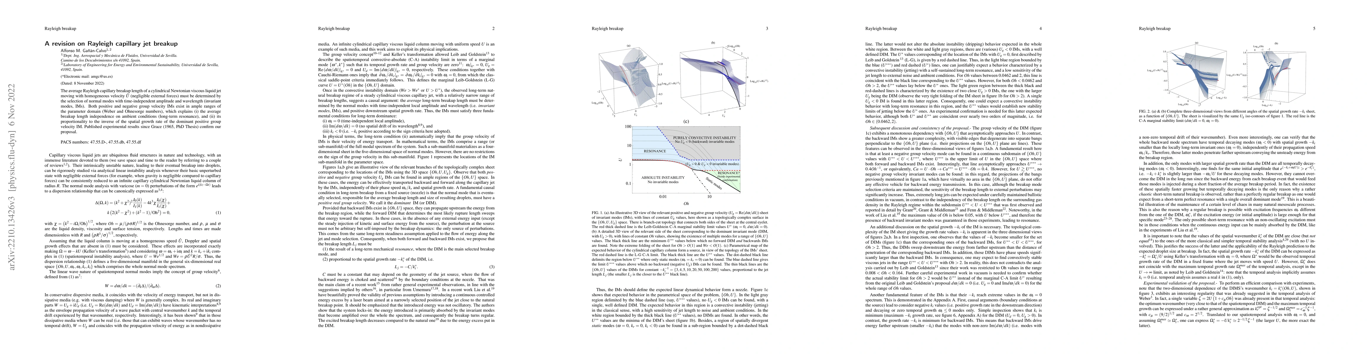This paper revises the Rayleigh capillary breakup length for a cylindrical Newtonian jet, showing that it depends on invariant modes with time-independent amplitude and wavelength. The average breakup length is independent of ambient conditions and proportional to the inverse of the dominant positive group velocity invariant mode's spatial growth rate, confirmed by experimental results since 1965.