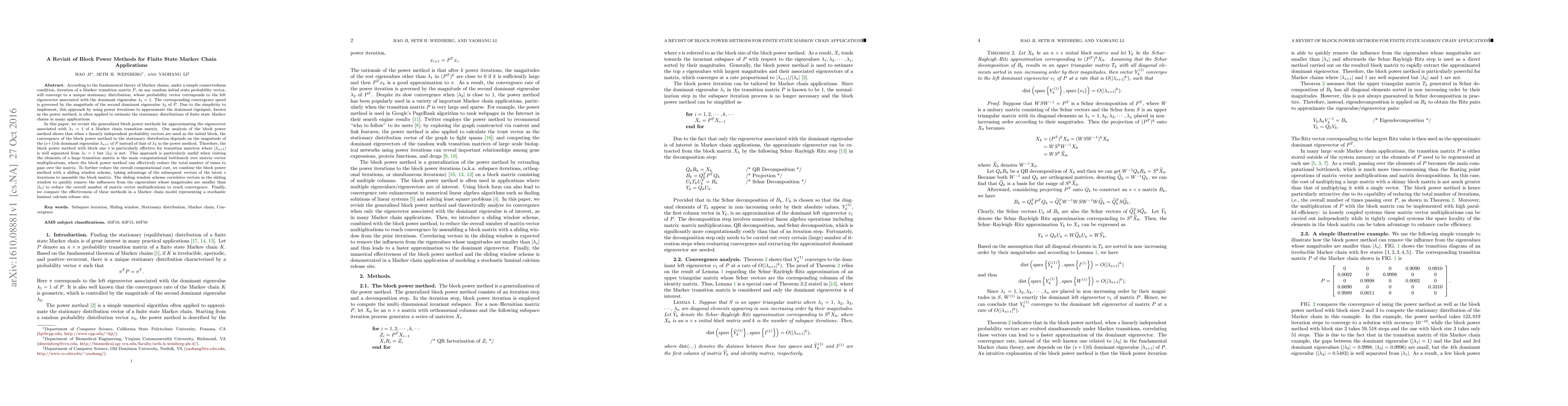 Researchers improved Markov chain analysis by optimizing a power method to reduce computations, finding that using larger blocks improves convergence when specific eigenvalues dominate the matrix.