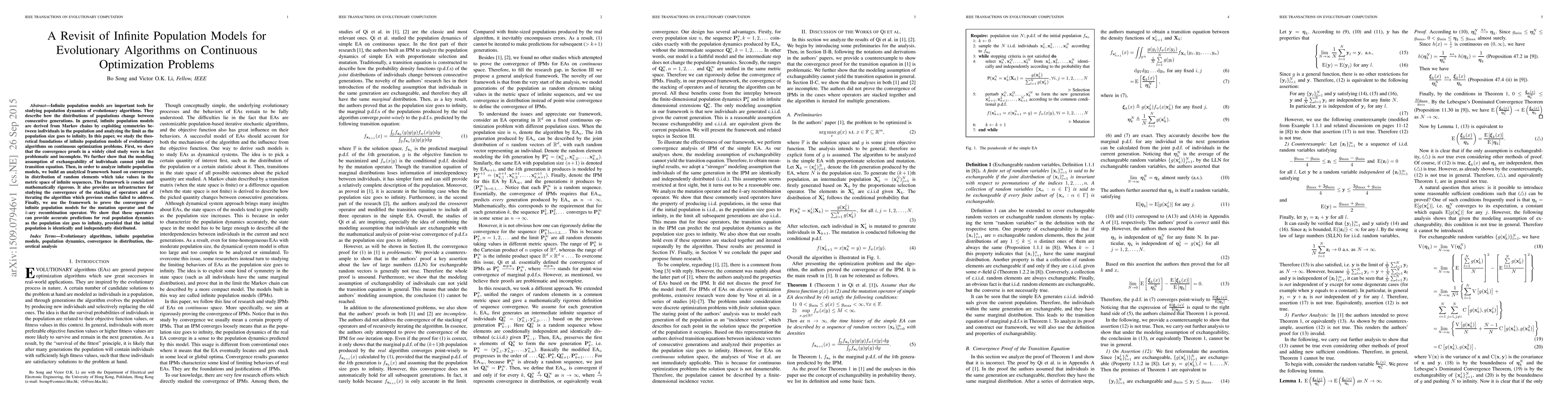 This paper revisits the theoretical foundations of infinite population models for evolutionary algorithms in continuous optimization, identifying issues in previous convergence proofs and proposing a new analytical framework for rigorous analysis. The new framework accurately predicts population dynamics in the limit of infinite population size.