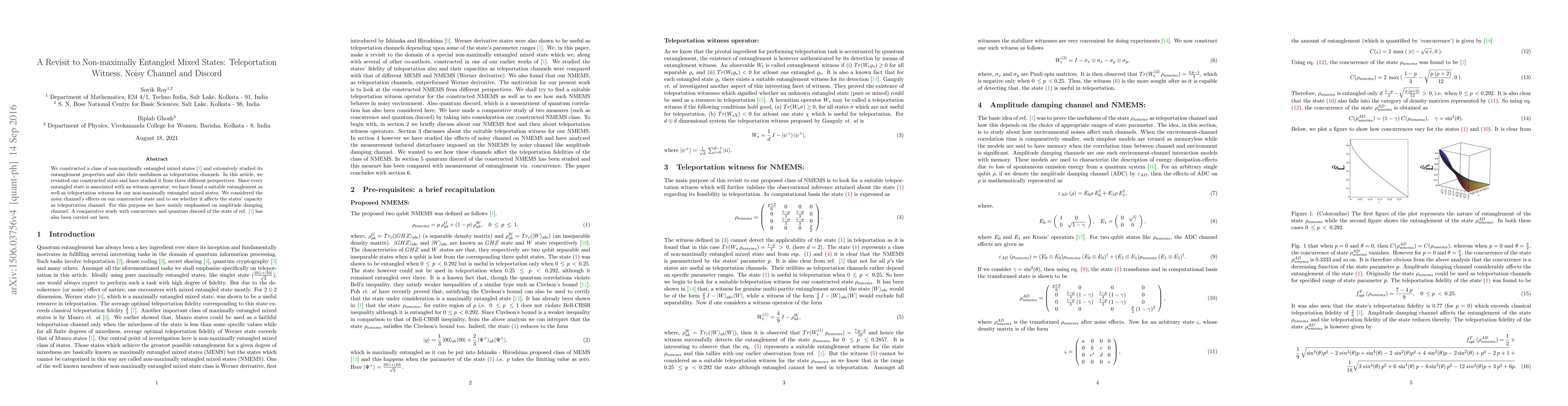 We constructed a class of non-maximally entangled mixed states \cite{roy2010} and extensively studied its entanglement properties and also their usefulness as teleportation channels. In this article, we revisited our constructed state and have studied it from three different perspectives. Since every entangled state is associated with an witness operator, we have found a suitable entanglement as well as teleportation witness for our non-maximally entangled mixed states. We considered the noisy channel's effects on our constructed state and to see whether it affects the states' capacity as teleportation channel. For this purpose we have mainly emphasized on amplitude damping channel. A comparative study with concurrence and quantum discord of the state of ref. \cite{roy2010} has also been carried out here.