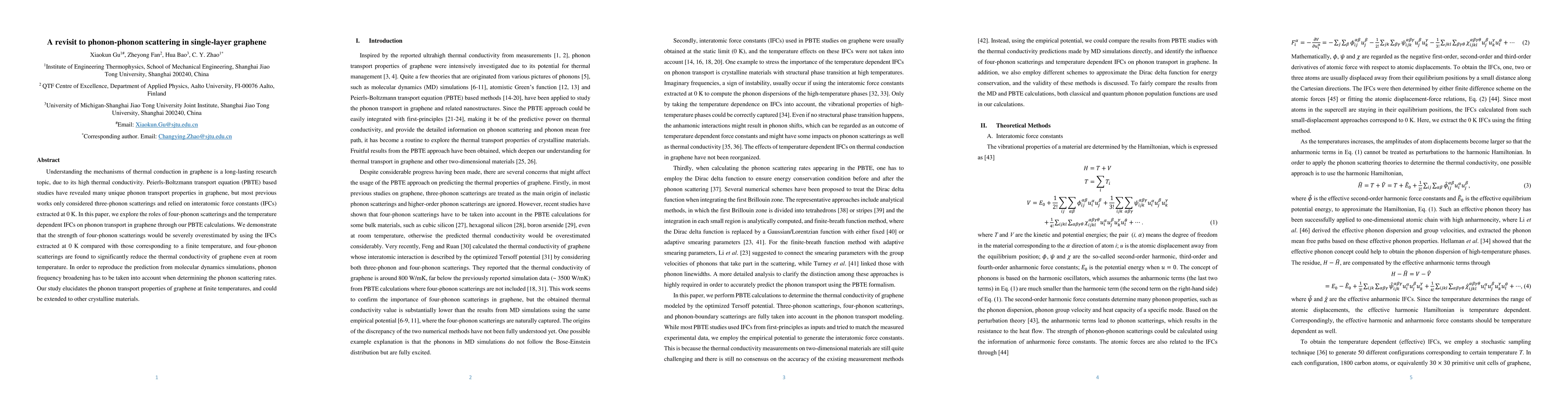 This paper investigates the impact of four-phonon scatterings and temperature-dependent interatomic force constants on phonon transport in graphene, revealing that four-phonon scatterings significantly reduce thermal conductivity at room temperature. The study highlights the necessity of considering phonon frequency broadening to accurately predict thermal conductivity.