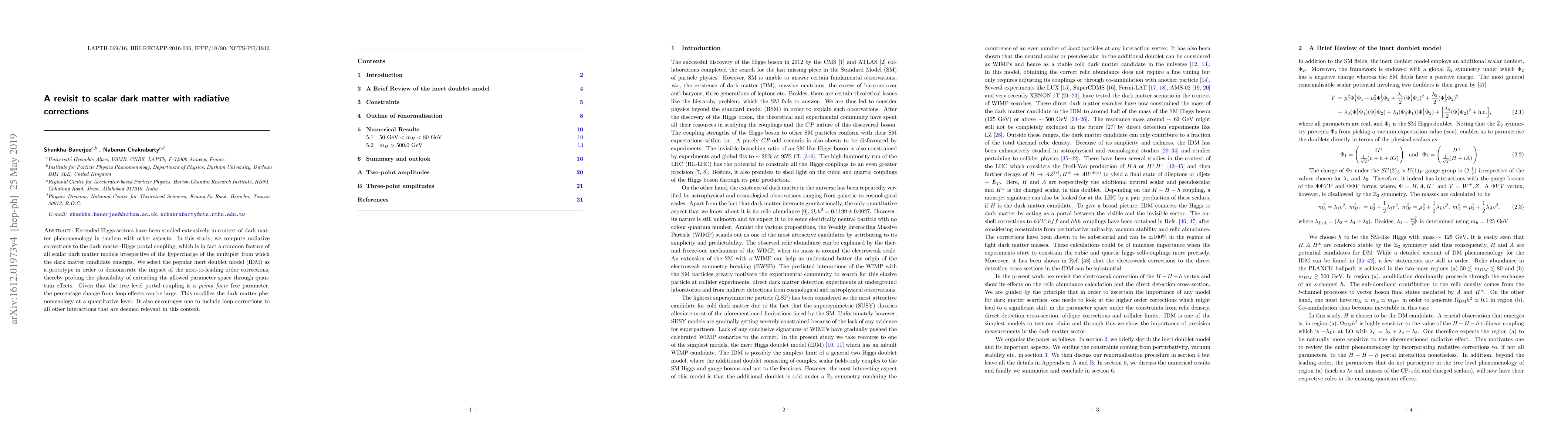 Extended Higgs sectors have been studied extensively in context of dark matter phenomenology in tandem with other aspects. In this study, we compute radiative corrections to the dark matter-Higgs portal coupling, which is in fact a common feature of all scalar dark matter models irrespective of the hypercharge of the multiplet from which the dark matter candidate emerges. We select the popular inert doublet model (IDM) as a prototype in order to demonstrate the impact of the next-to-leading order corrections, thereby probing the plausibility of extending the allowed parameter space through quantum effects. Given that the tree level portal coupling is a \emph{prima facie} free parameter, the percentage change from loop effects can be large. This modifies the dark matter phenomenology at a quantitative level. It also encourages one to include loop corrections to all other interactions that are deemed relevant in this context.