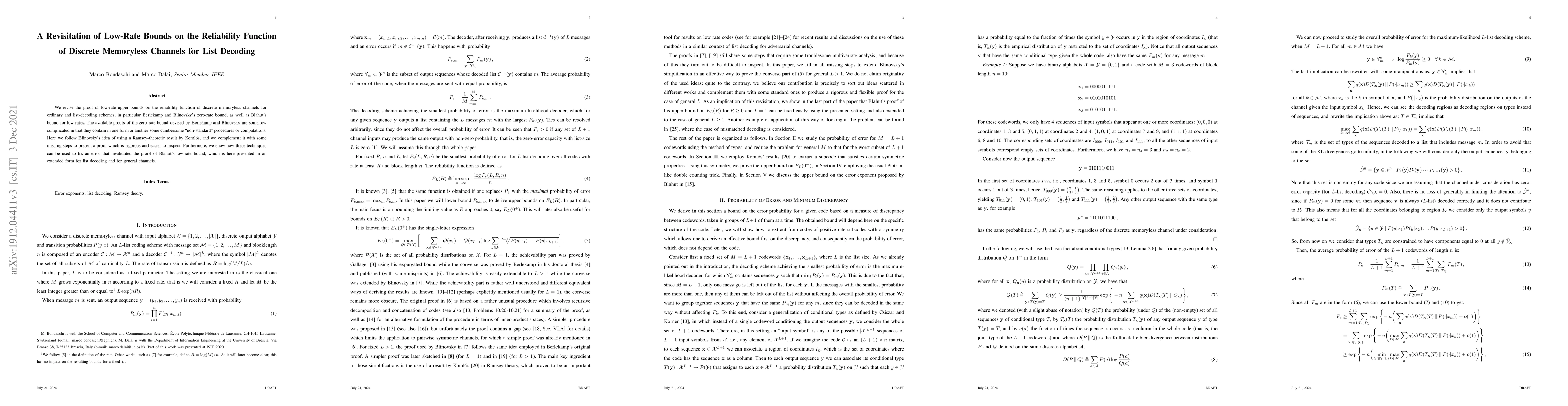 We revise the proof of low-rate upper bounds on the reliability function of discrete memoryless channels for ordinary and list-decoding schemes, in particular Berlekamp and Blinovsky's zero-rate bound, as well as Blahut's bound for low rates. The available proofs of the zero-rate bound devised by Berlekamp and Blinovsky are somehow complicated in that they contain in one form or another some cumbersome "non-standard" procedures or computations. Here we follow Blinovsky's idea of using a Ramsey-theoretic result by Komlos, and we complement it with some missing steps to present a proof which is rigorous and easier to inspect. Furthermore, we show how these techniques can be used to fix an error that invalidated the proof of Blahut's low-rate bound, which is here presented in an extended form for list decoding and for general channels.