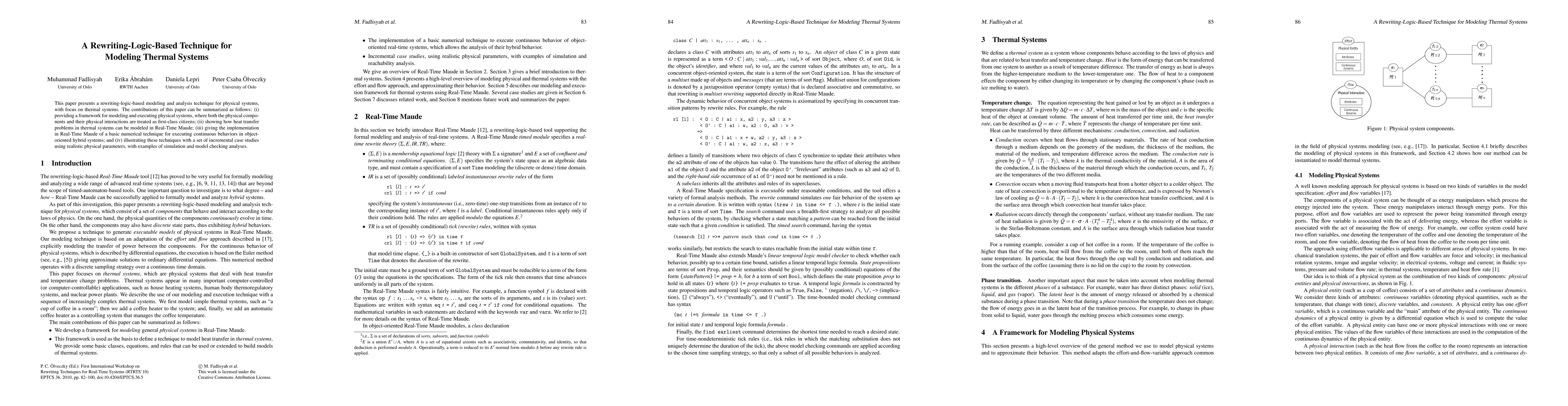 This paper introduces a rewriting-logic-based framework for modeling and analyzing thermal systems using Real-Time Maude, emphasizing the modeling of physical interactions and demonstrating the technique through simulation and model checking analyses.