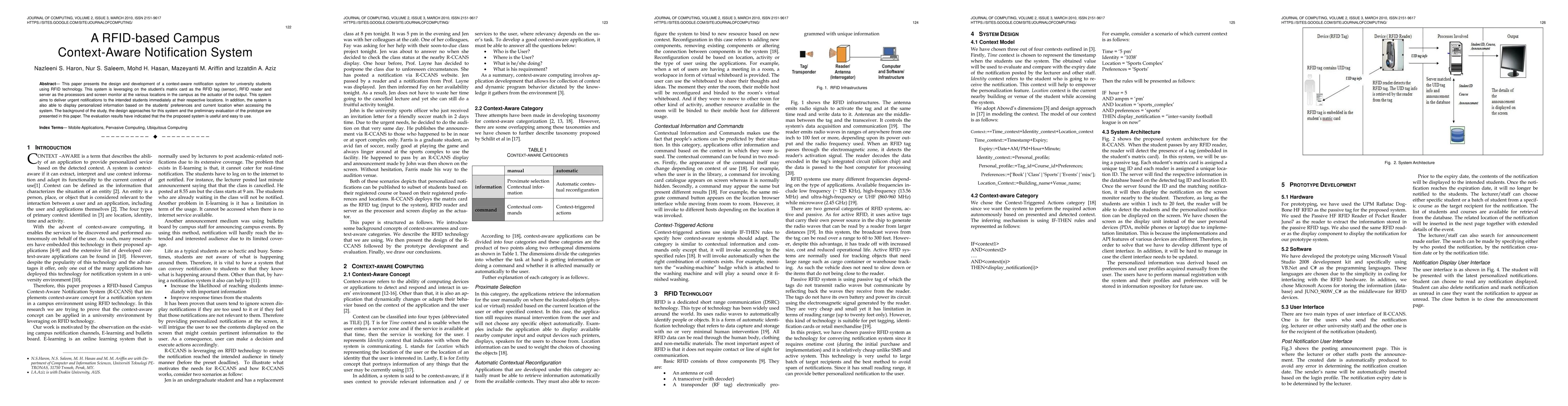 This paper develops a RFID-based context-aware notification system for university students, utilizing RFID tags on matrix cards to deliver urgent notifications and personalized information at campus locations. Preliminary evaluation shows the system is both useful and user-friendly.