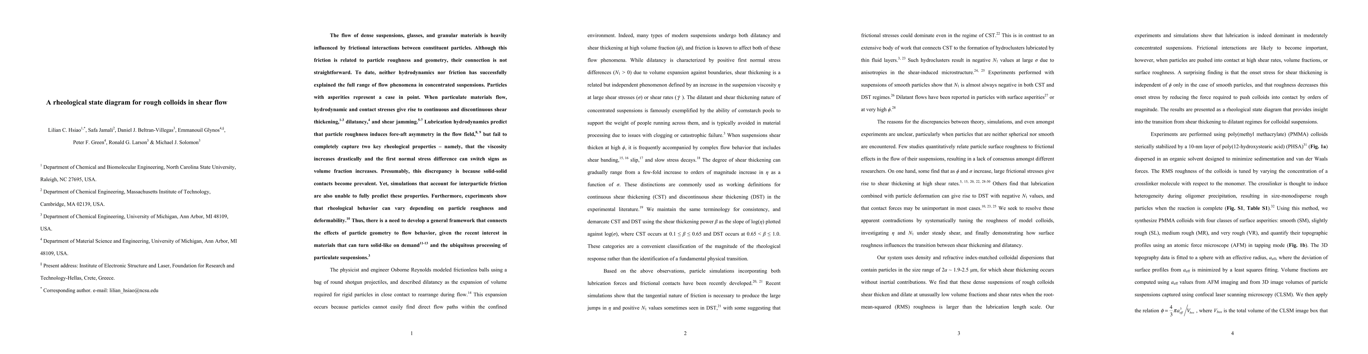The research presents a rheological state diagram for rough colloids in shear flow, demonstrating that surface roughness significantly impacts the transition between shear thickening and dilatancy. Simulations, validated by experiments, show that friction between rough particles is crucial, and roughness progressively lowers the critical conditions for shear thickening and dilatancy onset, with broad implications for suspension rheology and material design.