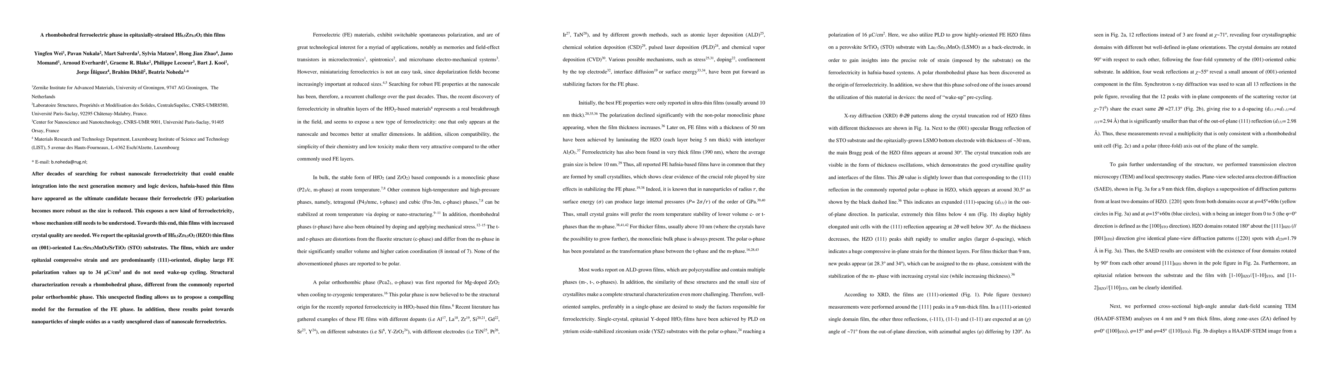 This study reports the epitaxial growth of Hf0.5Zr0.5O2 thin films on La0.7Sr0.3MnO3/SrTiO3 substrates, revealing a rhombohedral ferroelectric phase with large polarization values and no wake-up cycling, challenging the common orthorhombic phase model.